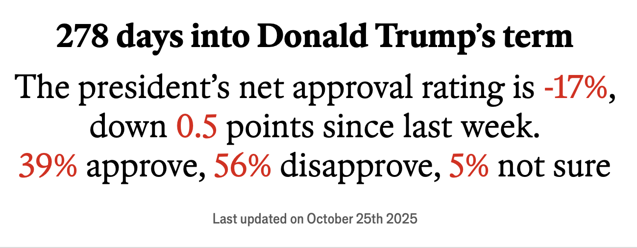 3. Then there's Trump's ever-cratering approval rating, with disapproval at 56% compared to 39% approval in a graphic issued yesterday by The Economist.