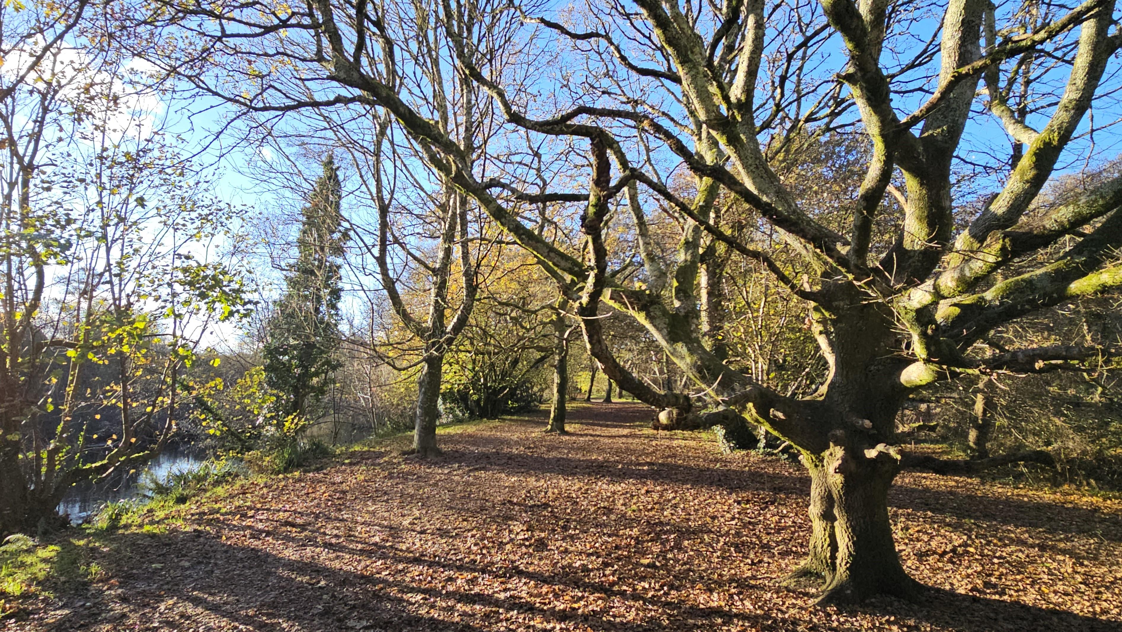 A long bridge stretches across the lake, connecting the two sides of the lush, forested hills. The bridge, with its elegant arches, adds a touch of human engineering to the natural beauty, creating a harmonious blend of nature and architecture. The hills surrounding the lake are adorned with a mix of evergreen and deciduous trees, their leaves displaying a vibrant palette of autumn colors—ranging from deep greens to bright yellows and oranges.