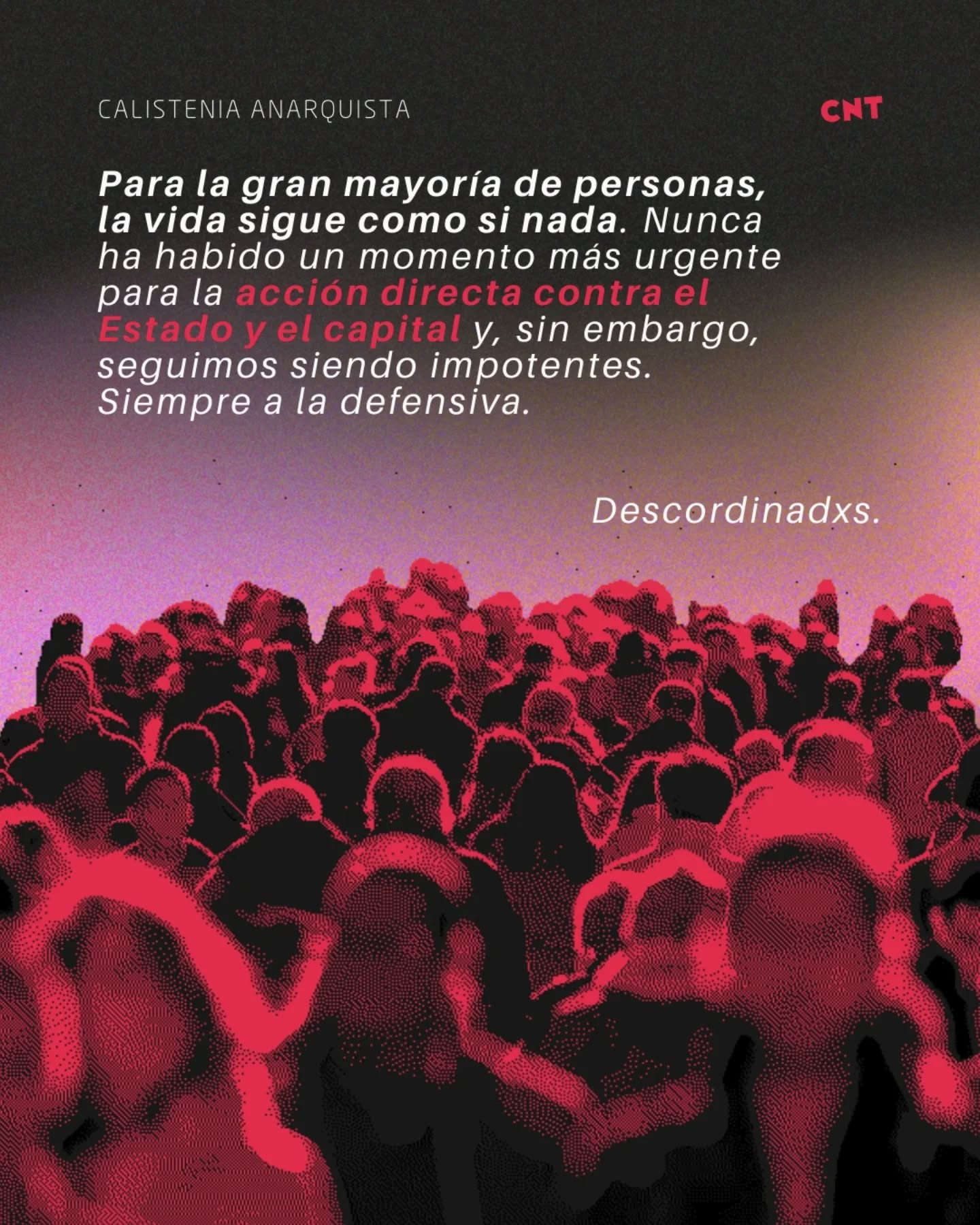 Este paso hacia adelante es crucial para la organización y reorganización del movimiento obrero y cultural anarquista, la creación de grupos de militantes, espacios de cultura libertaria, etc.