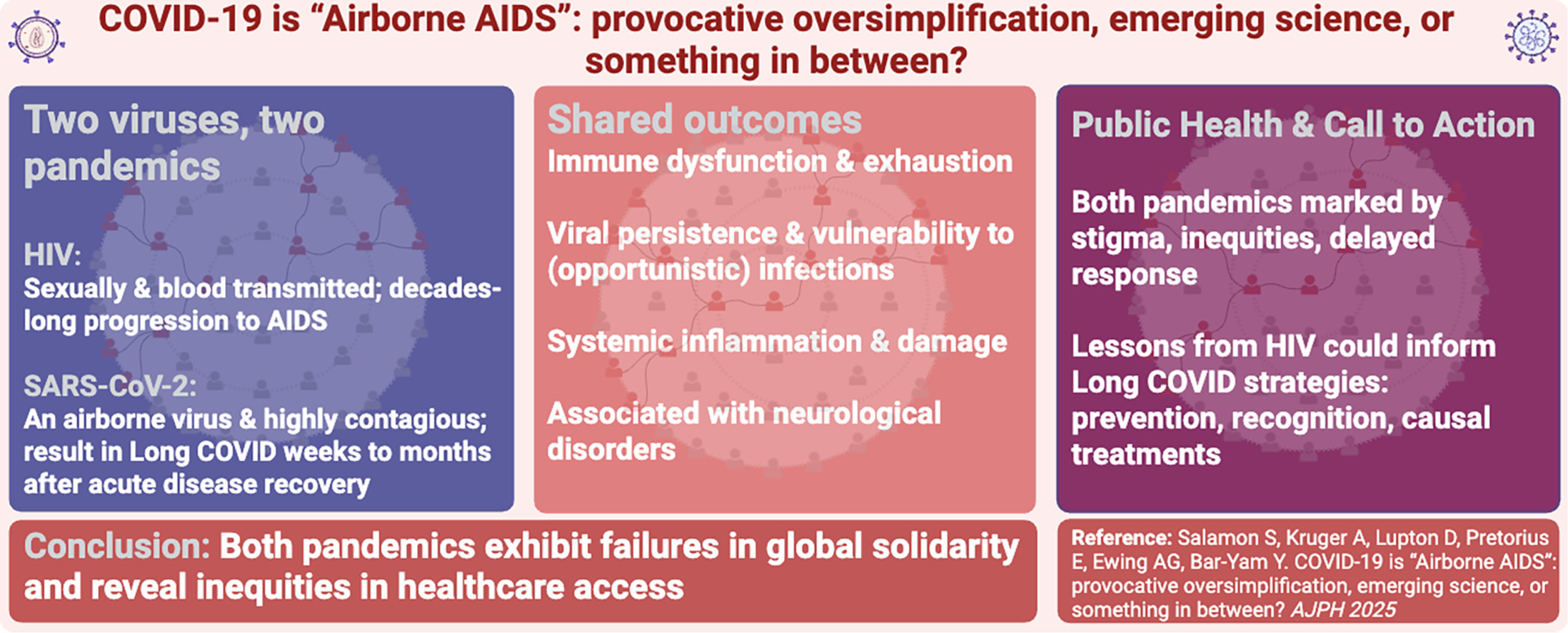 SARS-CoV-2 verursacht zwar kein HIV/AIDS, aber seine Fähigkeit, Immunfunktionsstörungen hervorzurufen – einschließlich T-Zell-Depletion und -Dysfunktion, erhöhter Anfälligkeit für Infektionen, einschließlich opportunistischer Infektionen, beschleunigter biologischer Alterung, neurologischer und systemischer Schäden – bietet Parallelen zu AIDS im breiteren immunologischen Kontext.