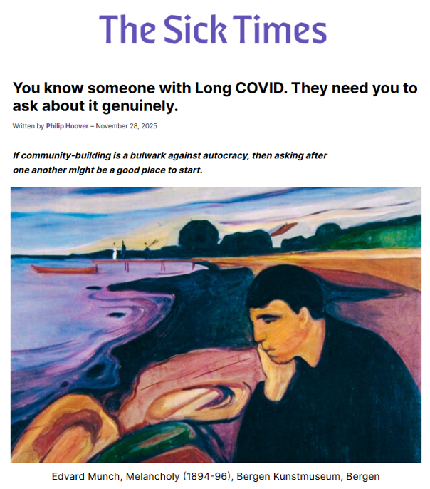 "The problem with Long COVID is that most of society would rather not see it. We want to believe the pandemic was just a bad dream we awoke from years ago. (When I hear someone say during COVID, in the past tense, I want to flip a table.)"