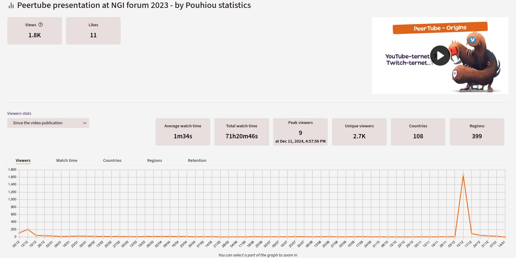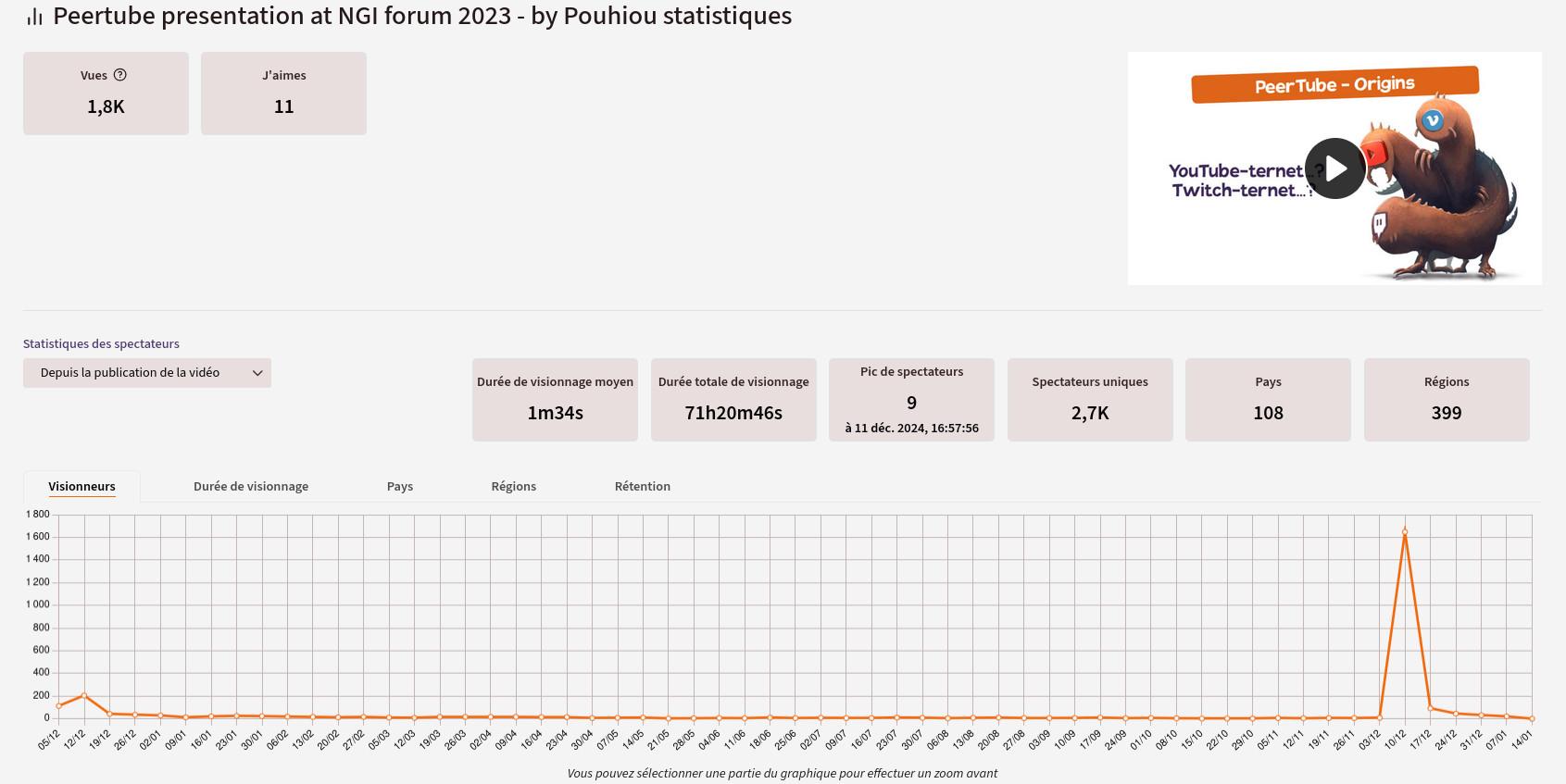 Sur #PeerTube, si vous souhaitez obtenir plus d'informations sur votre audience, vous pouvez consulter les statistiques de votre vid茅o.