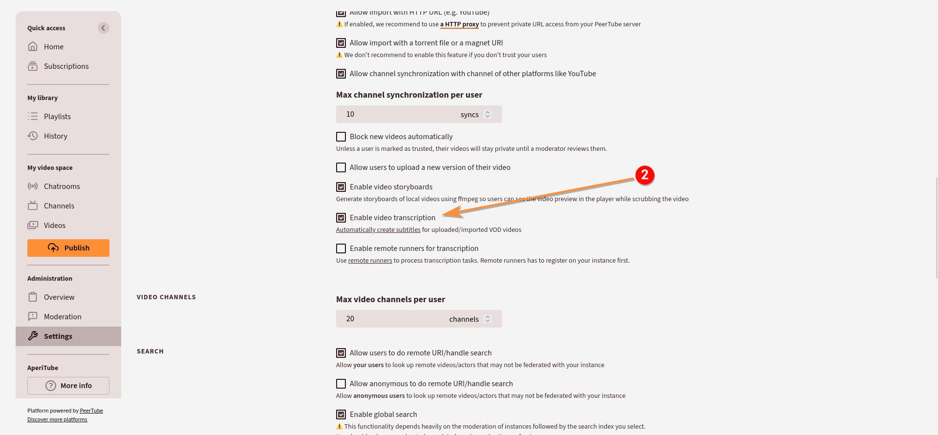 As the administrator of your #PeerTube platform, did you know you can enable automatic transcription of your platform videos?