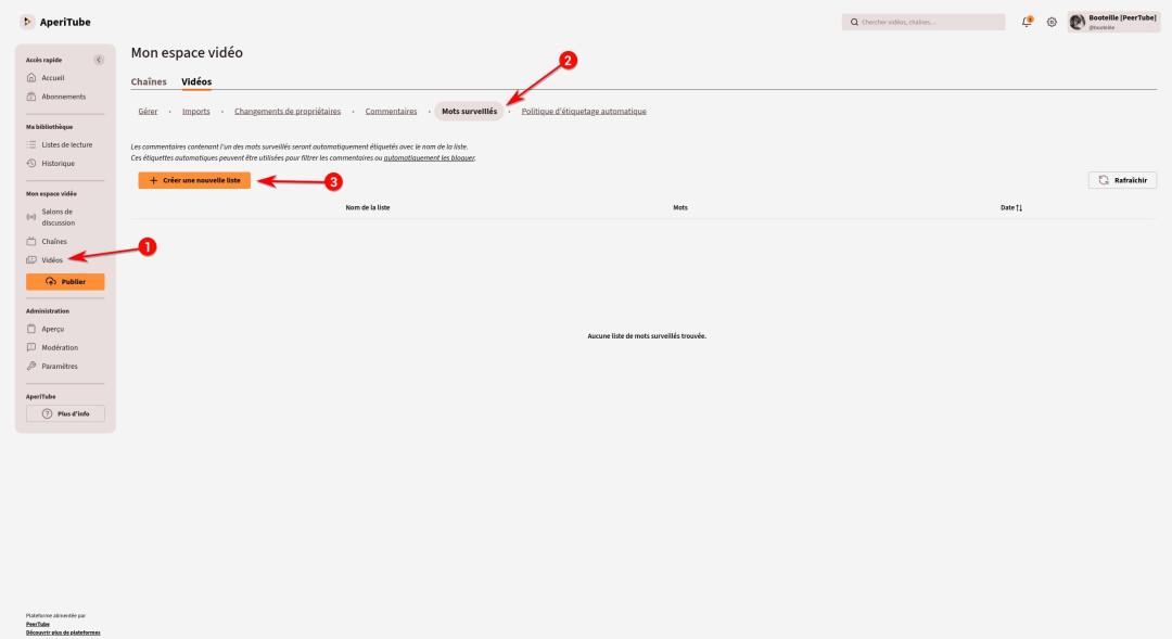 Notons aussi que les admins de plateformes peuvent créer des listes pour surveiller les commentaires sur l'ensemble de la plateforme.