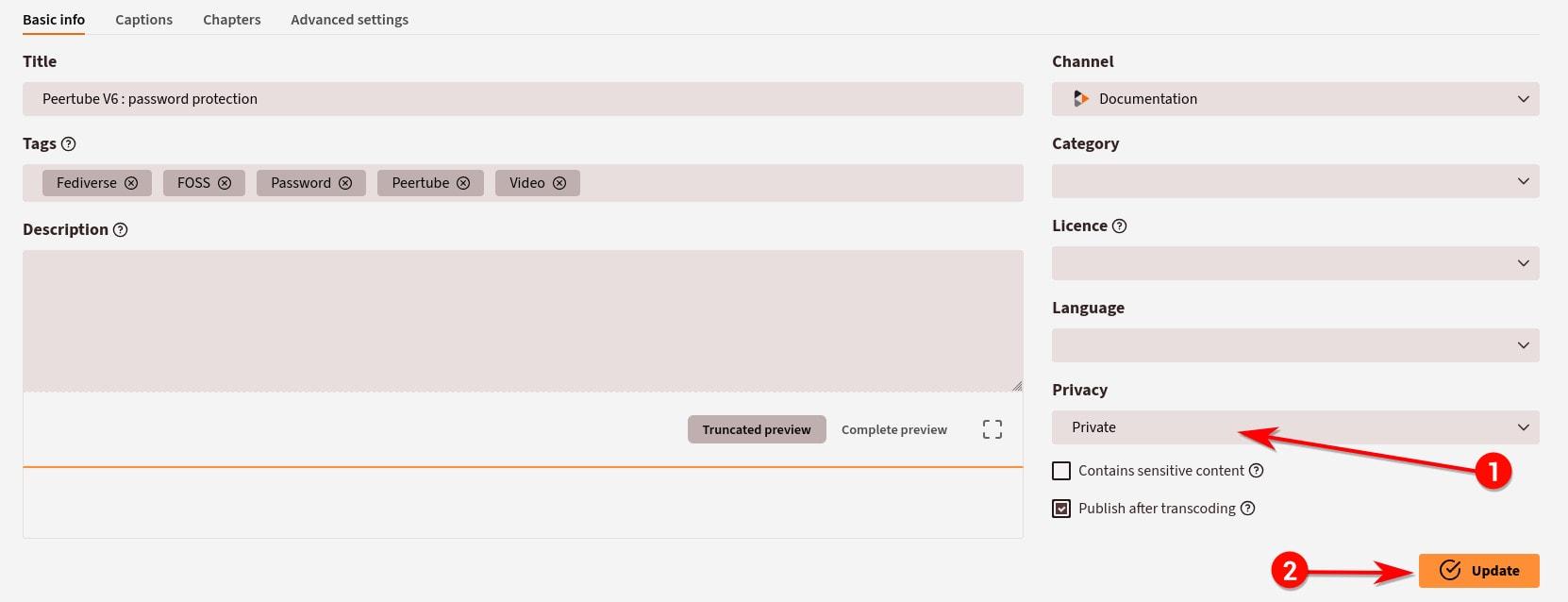 In #PeerTube, you can configure the confidentiality of your videos.