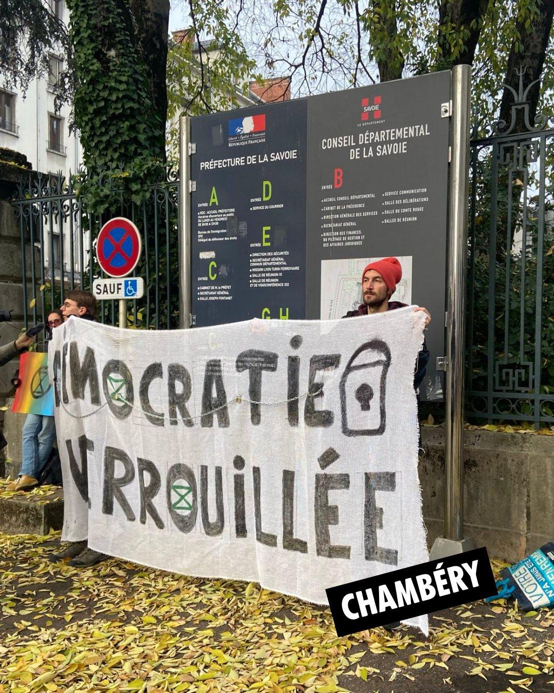 Extinction Rebellion France held protests outside government buildings in three towns last week, calling for greater action to address climate breakdown.