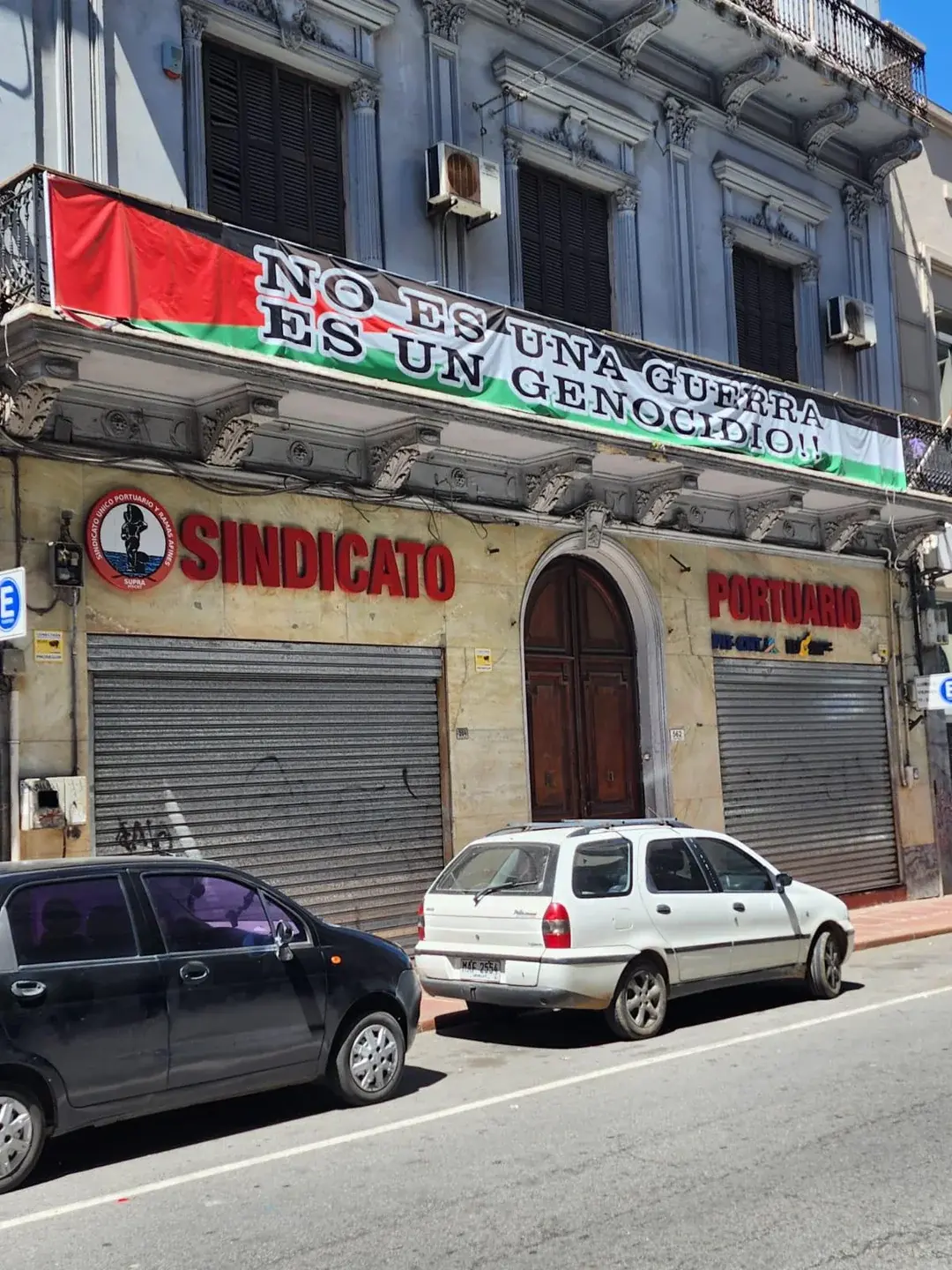 A mural on the wall of Palermo university, and the port workers' union building in Montevideo.