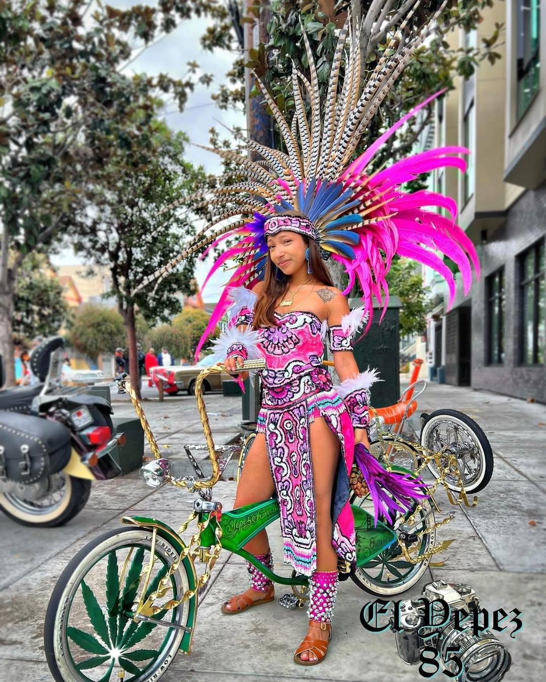 An Indian man in loose white clothing and shades sitting on a floor strewn with orange petals. There's an explosion of yellow pigment powder around him, staining his shirt bright yellow and his trousers a paler pastel. There's an ornate golden sculpture behind him, and strings of yellow decoration hanging down from above.