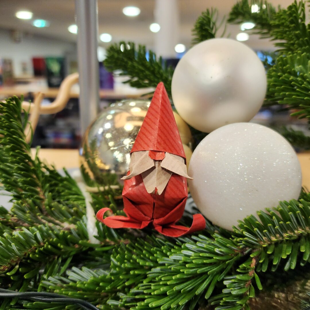 This morning’s task at work is to make tiny origami santa hats for my desk ducks.