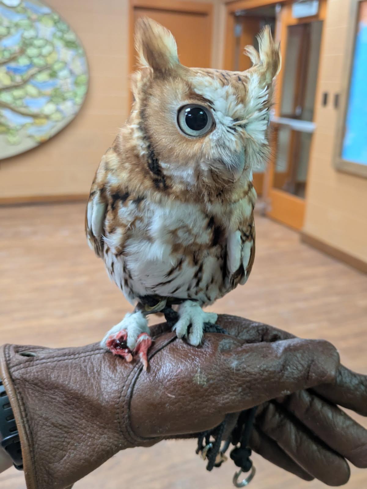 This is Baked Beans. He is a baby screech owl and is being raised for the zoo's ambassador bird program.