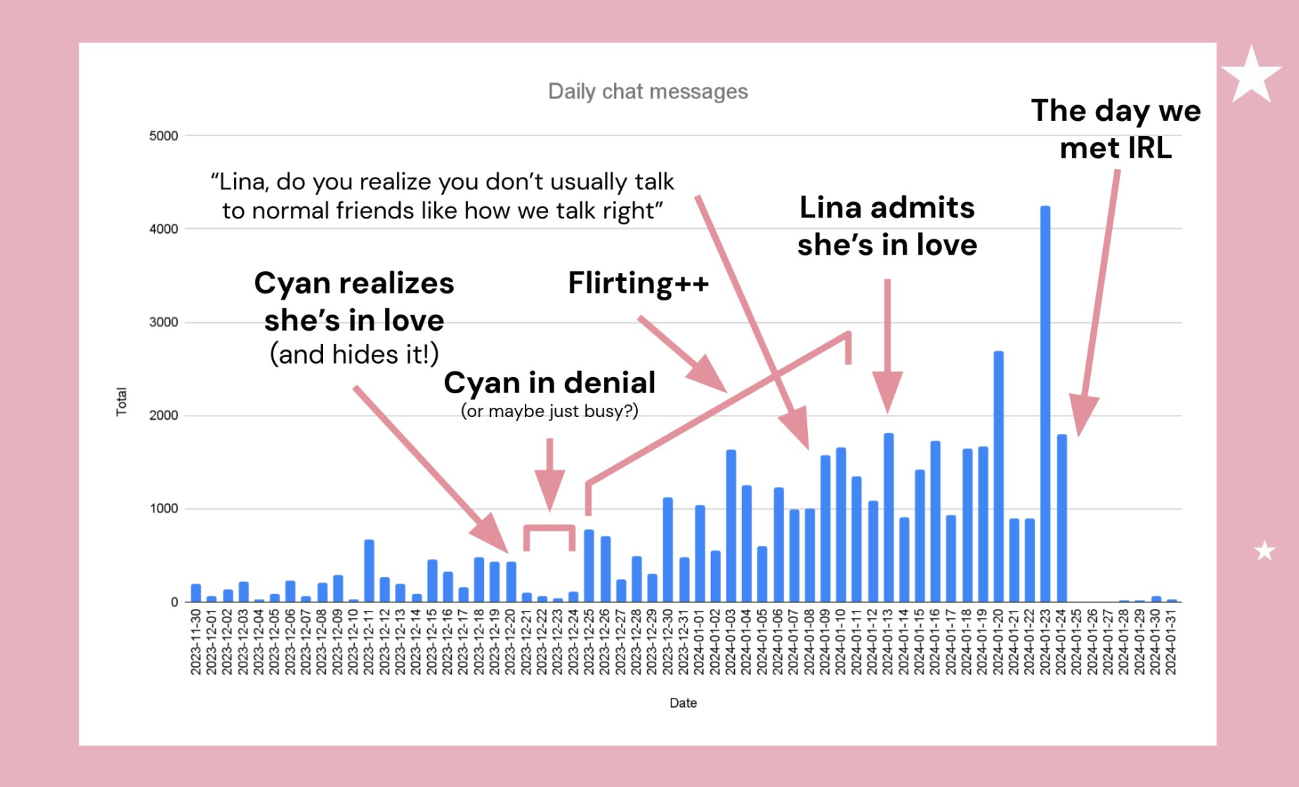 Yes, I'm a total nerd and I analyzed my chat history with my gf @cyan~💙💙
