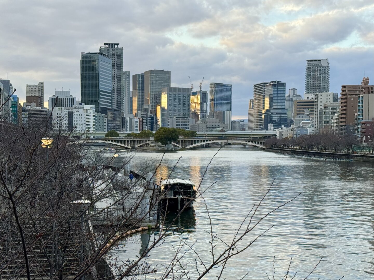 Skyscrapers & setting sun light, Osaka.