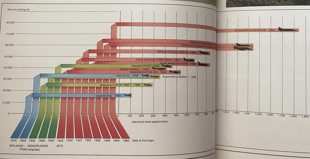 Beautiful vintage #infographic on the ceiling & speed of different aircraft