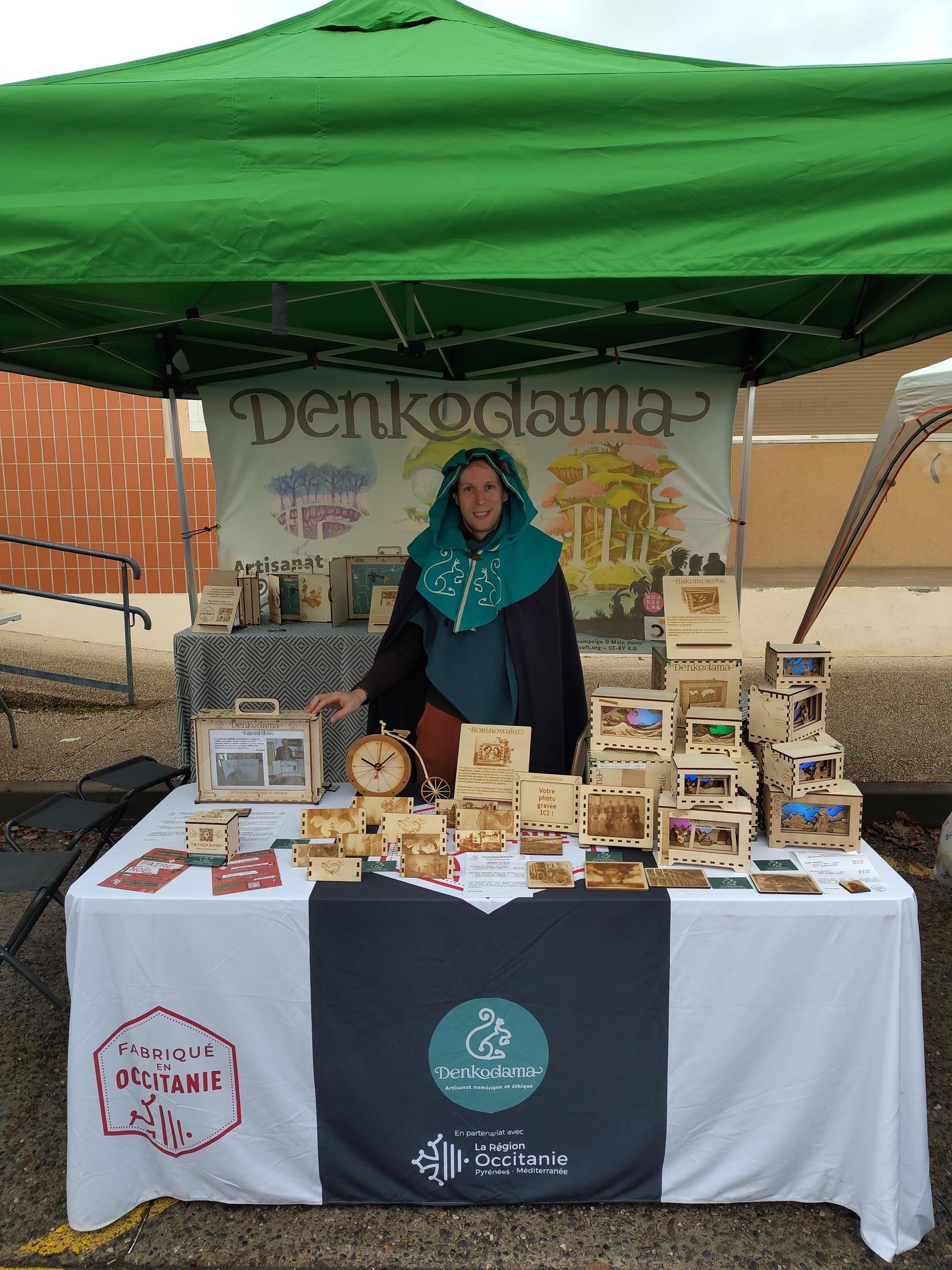 Salut le Fédivers ! Je vais poser mon stand d'artisanat (en licence libre) sur le marché de Die dans la Drôme ce mercredi 13. Profitez-en si vous êtes dans le coin, je n'y passe pas souvent ! Vous ne devriez pas me louper avec ma capuche (vu les températures je n'aurai peut-être pas la cape ahem)