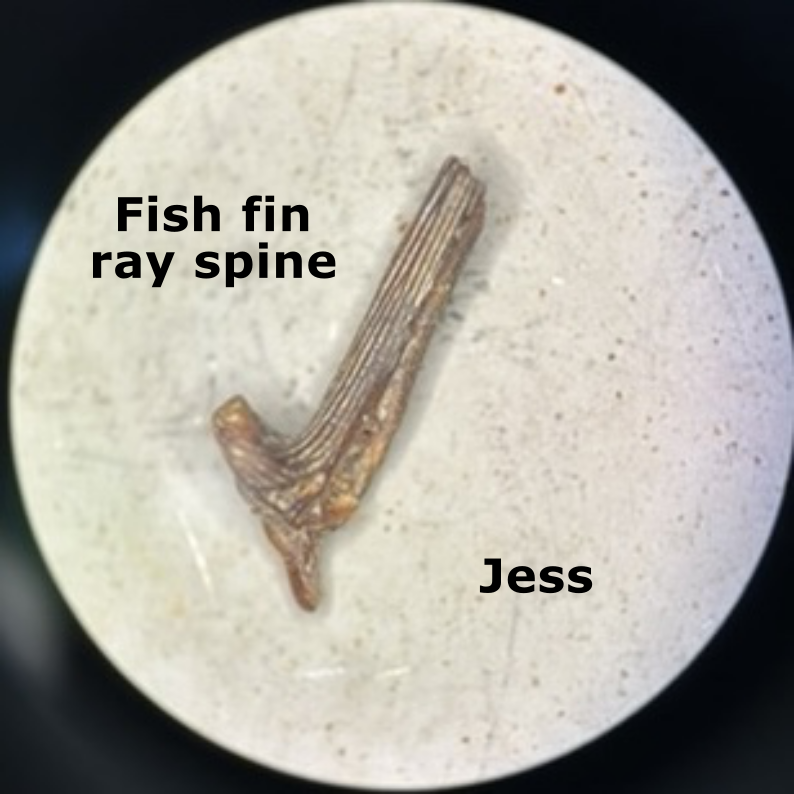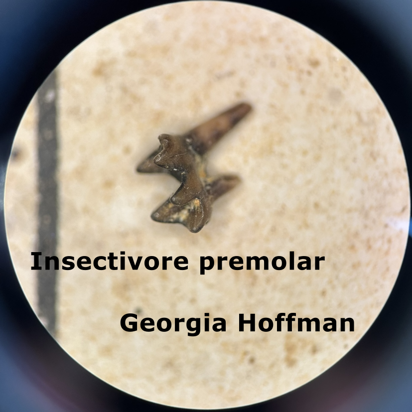 Photo of Lety and the Creature Mastodon stuffed toy standing in front of a mastodon museum exhibit under warm, indoor lighting. From top to bottom, Lety is shown wearing a short, white, long-sleeve dress with red floral print and brown sandals. Her body is roughly facing the camera, the Creature in her arms, as she turns her and the Creature back towards her left to look up at the massive fossilized skeleton of an American mastodon. On the floor between Lety and the skeleton is an exhibit sign reading “American mastodon”, “(Mammut americanum)”, “2 million to 10,000 years ago”, with a map showing the species' historical range across North America and some other out-of-focus text. In the background are several other museum visitors viewing smaller fossil displays in glass cases along a back wall.