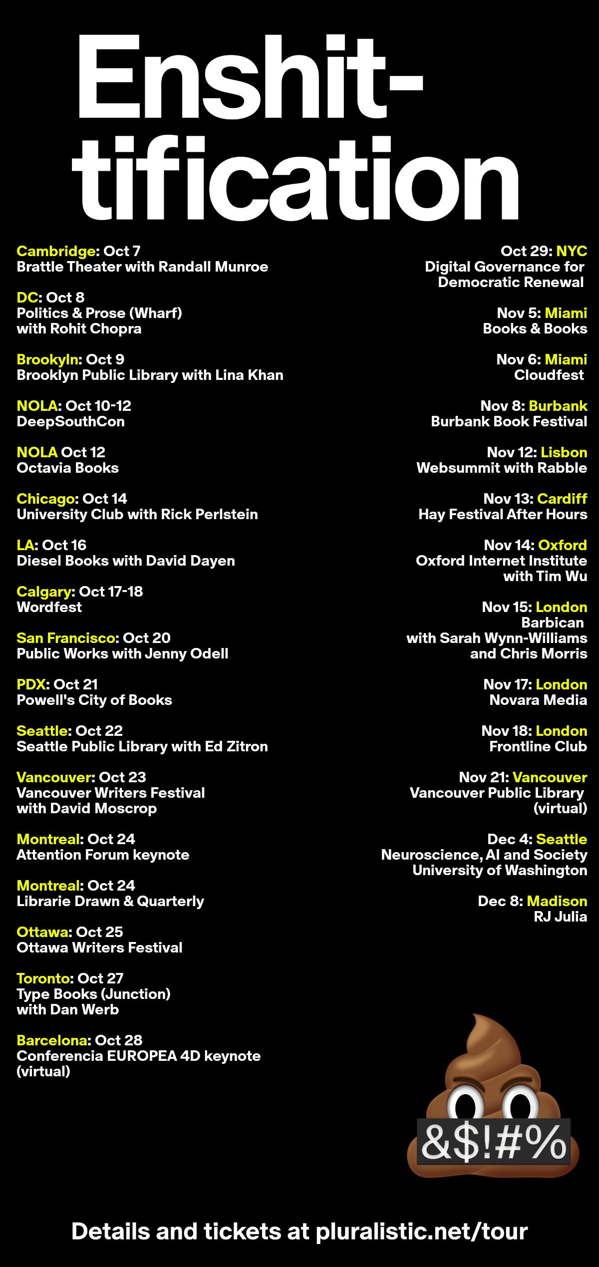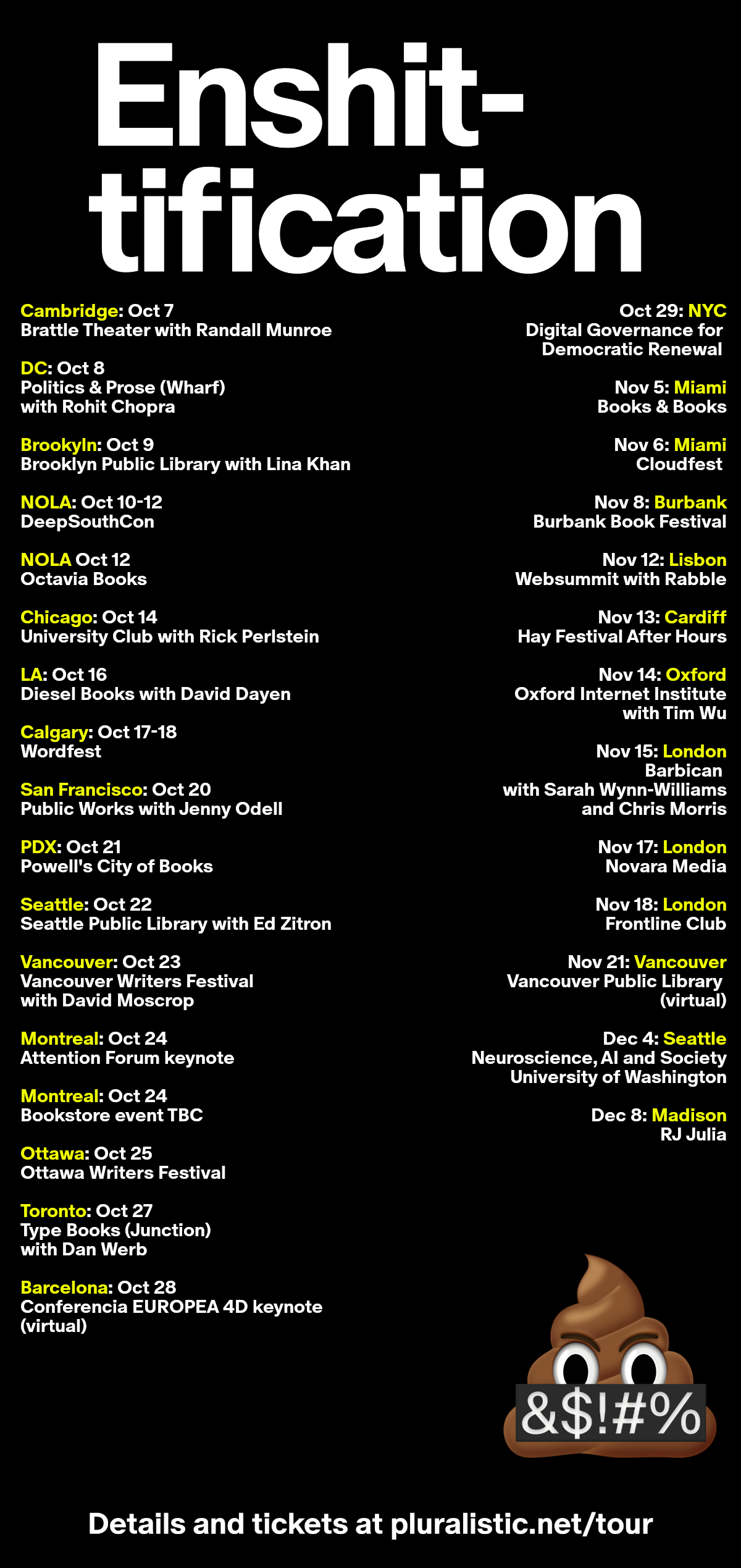 Pluralistic: Announcing the Enshittification tour (30 Sep 2025)