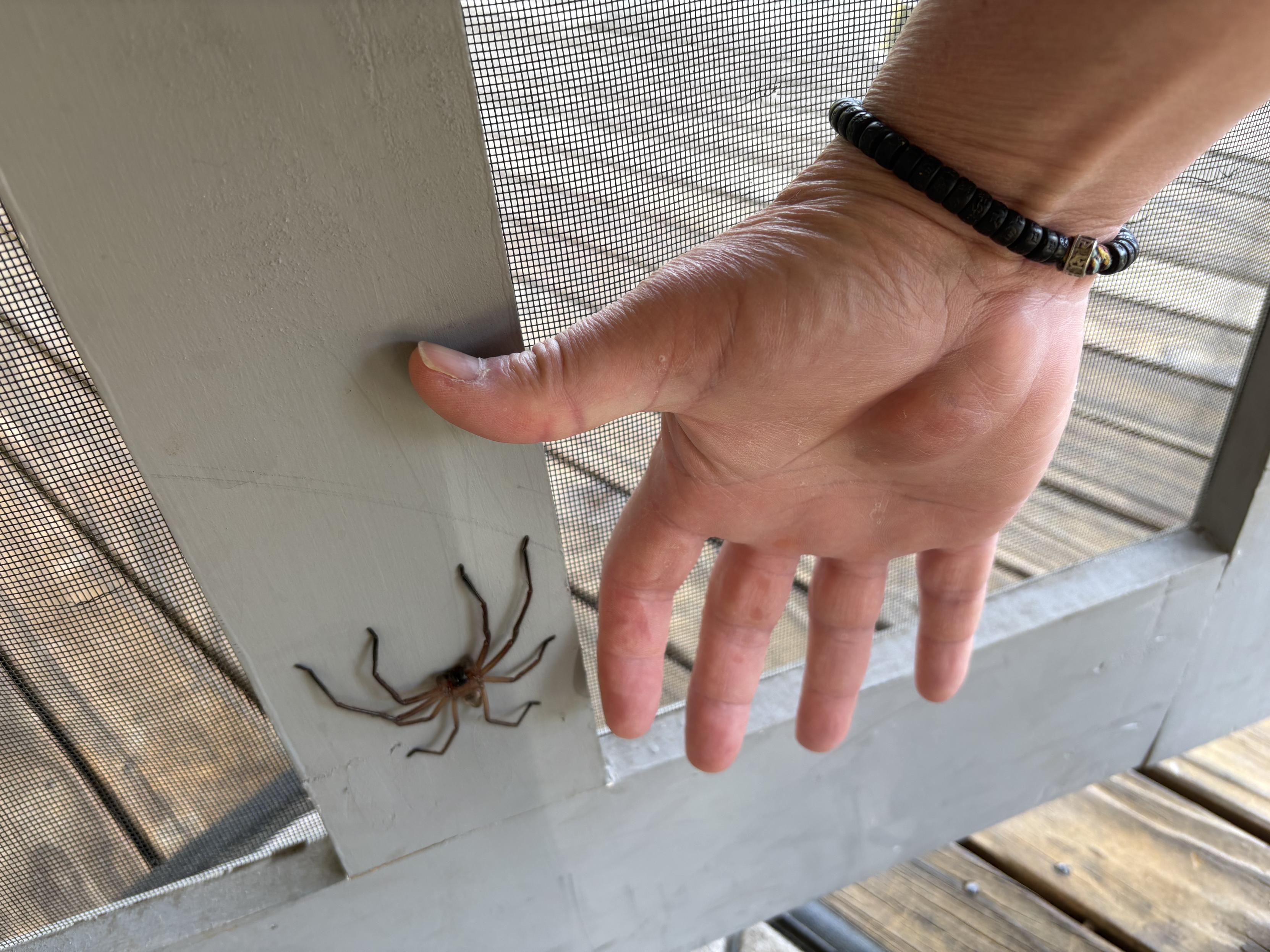 Changing batteries in some trail cameras. One of the local Huntsmans has moved in.