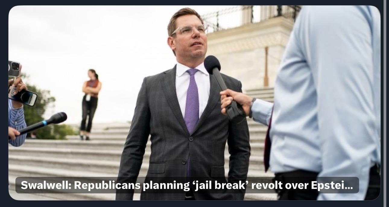 Rep Swalwell⚡predicted Wed that dozens of #Republicans may ultimately support leg requiring the DOJ to release files related to convicted sex offender Jeffrey #Epstein.