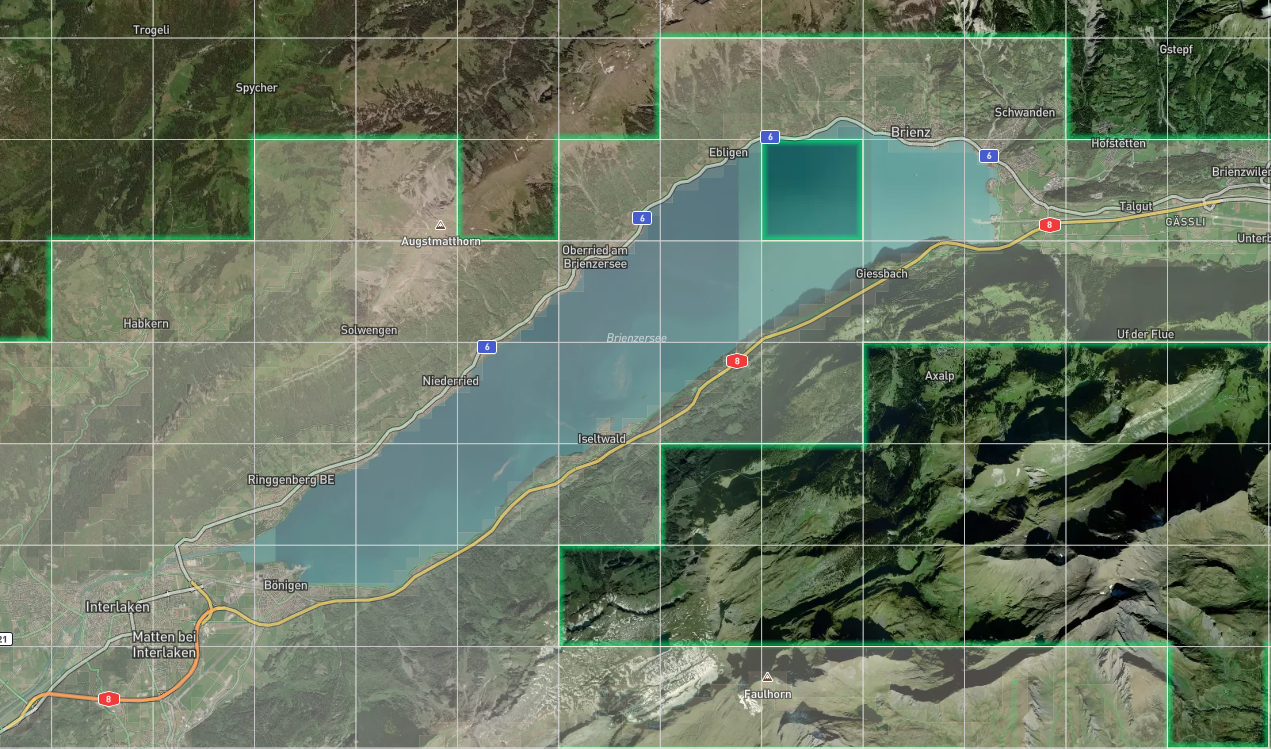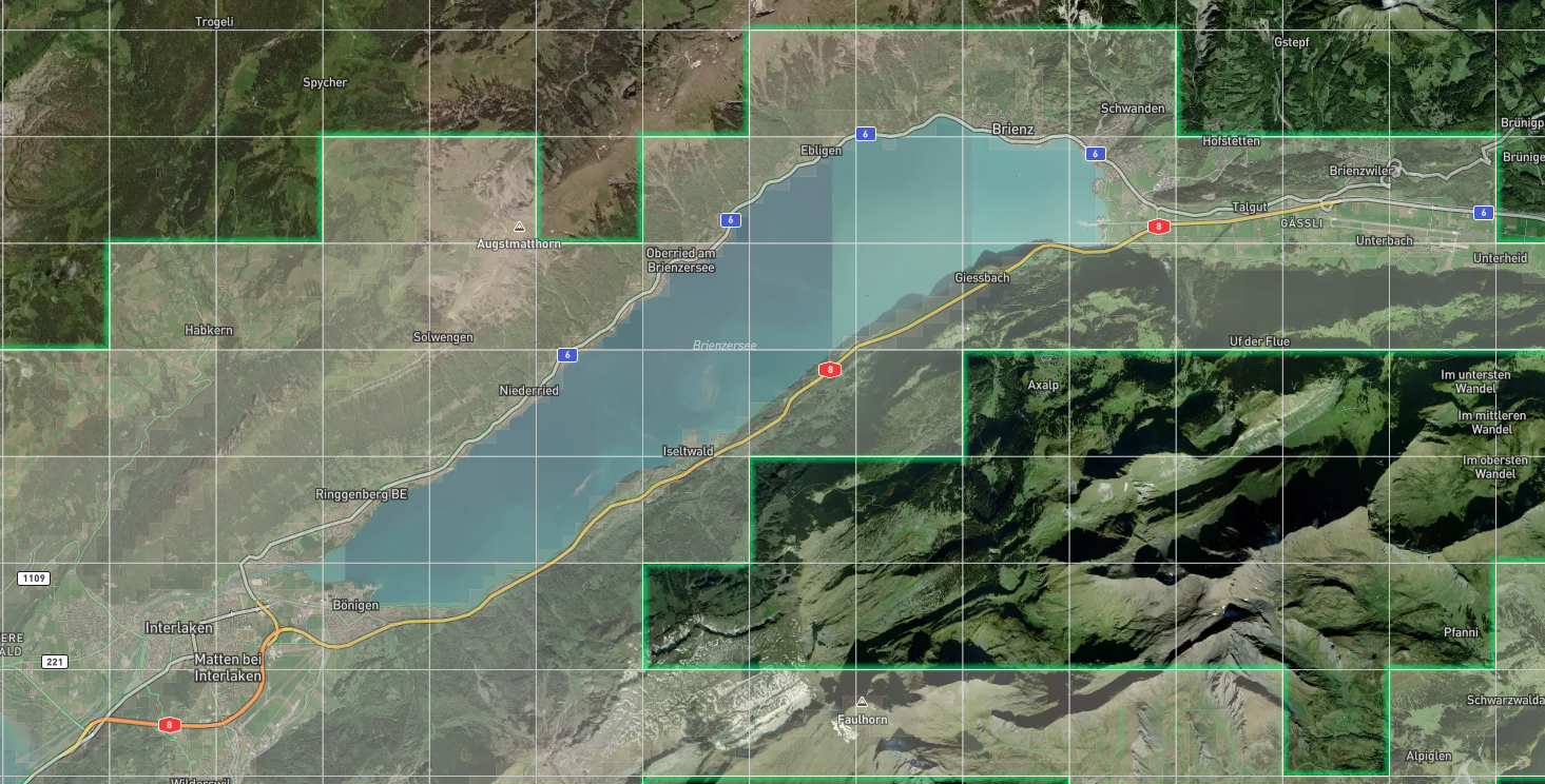 Further goal for today, fill the annoying missing tile in Lake Brienz. Right at the top side there is a parking spot where we can get to (do not plan to go for a swim today).