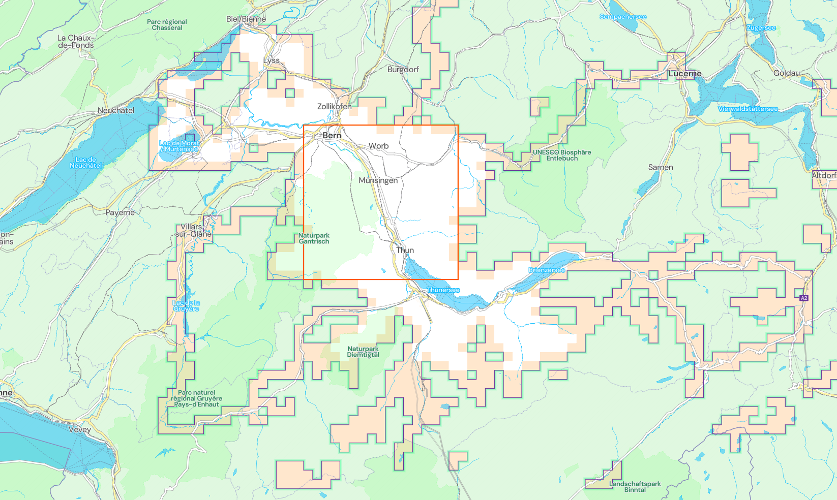 Today was a good day. Now my yard/cluster (white tiles) is back to where it was: from Lac de Neuchatel to Brienz.