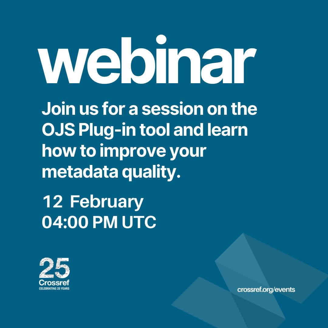 Working with OJS? Join our session on improving your metadata quality. Learn how to configure the OJS plug-in, deposit metadata correctly, and troubleshoot common challenges. https://crossref.zoom.us/webinar/register/2917633902091/WN_ixm9QC2XQkicUAK3XZLXSA