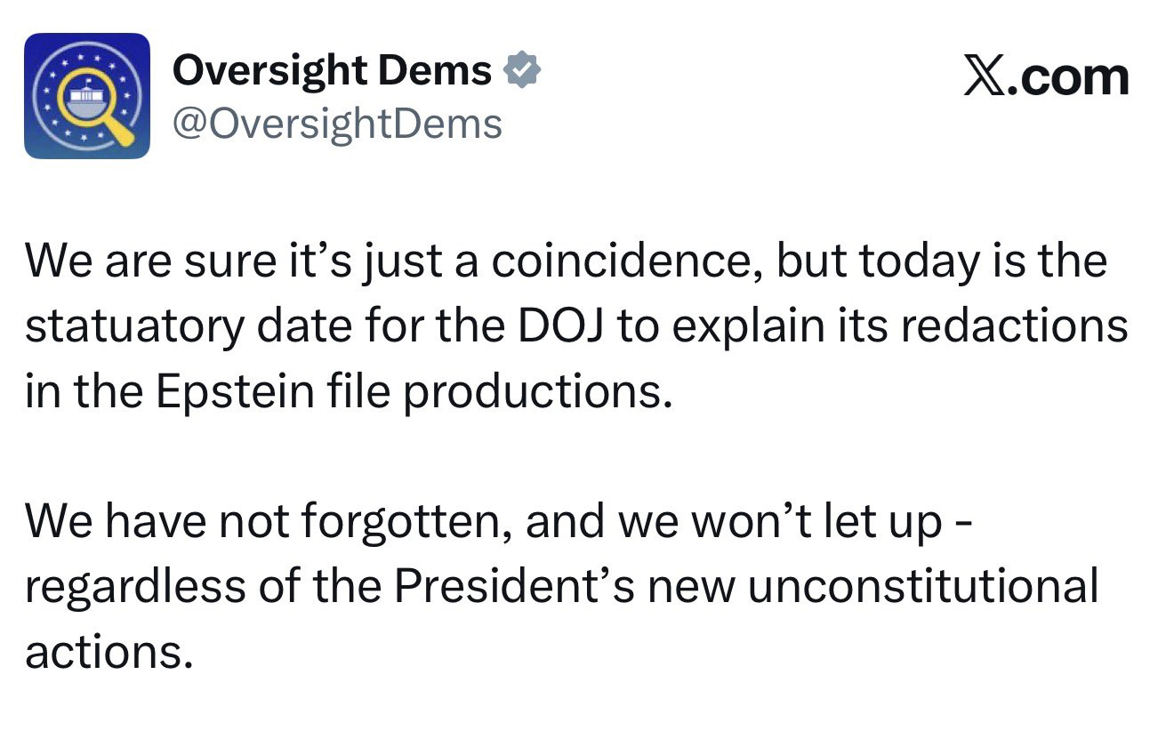 US President Trump timed the illegal attacks on Venezuela to coincide with the statutory deadline for his administration to explain the unlawful redactions made to the Epstein files, which it had partially and illegally released past the ordered dateline. #OpDeathEaters