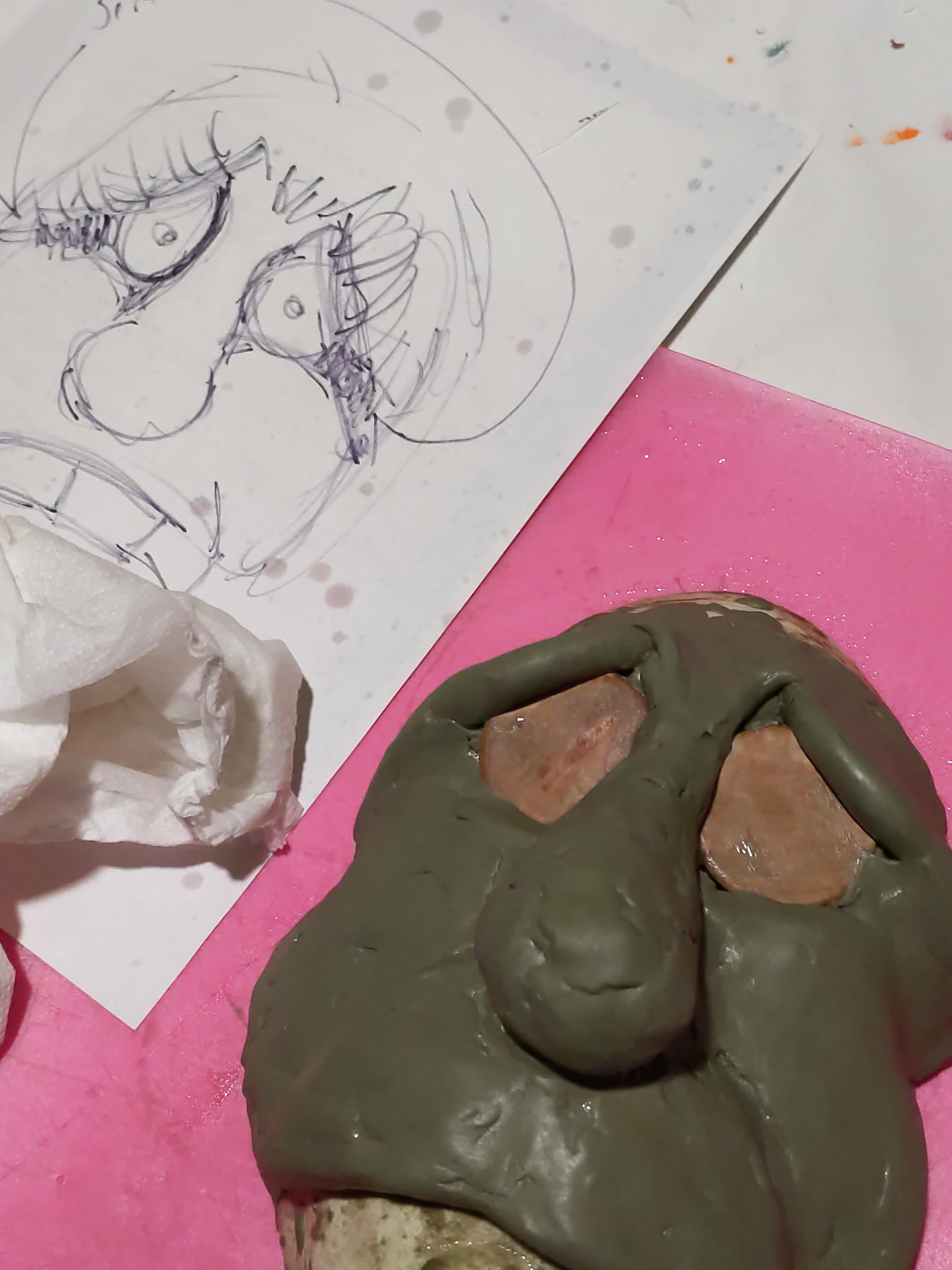 It's the first theater mask I've started since moving to #ThisOldClownHouse, and I'm excited to see how it turns out.