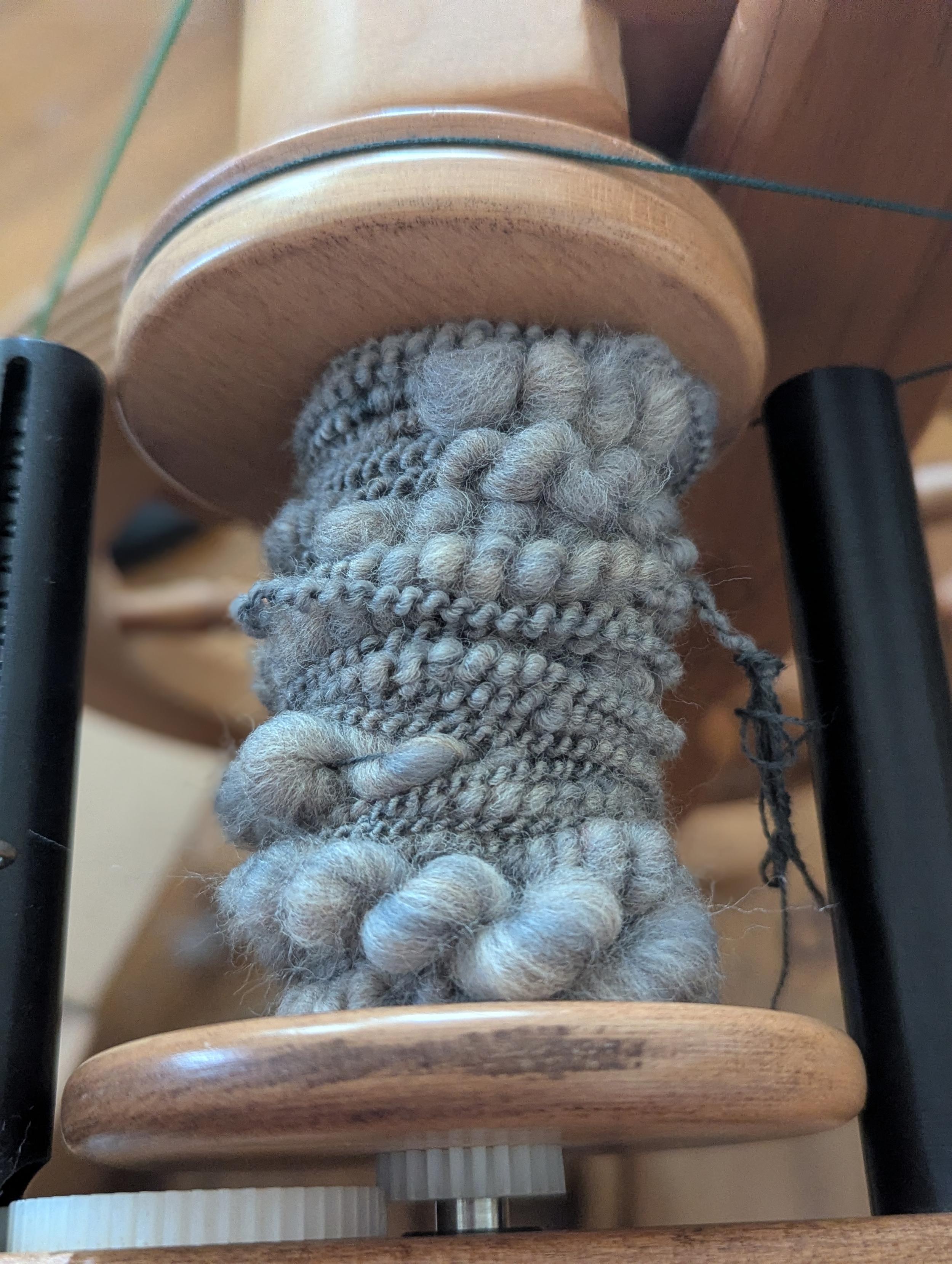 The result is... a bit more matted than I'd hoped. But it's salvageable. I can pull it apart into clumps, then load it onto the combs for standard combing passes before pulling off into a sliver. It smells nicer, albeit with still a strong doggy scent. I have yet to decide if washing is worth it...