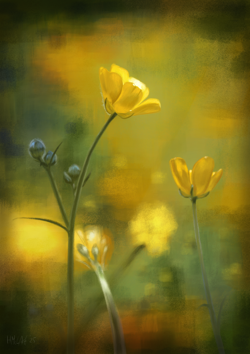 #ArtAdventCalendar Day 5. It's blimmin' cold today, so I'm posting something warm and sunny that I did referencing a spring photo of mine this year. Buttercups in my garden.