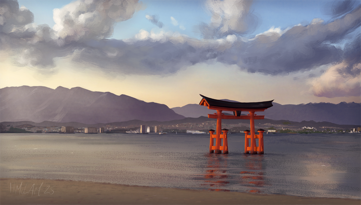 Hiroshima Bay, painted in Rebelle, with my own photo as reference.