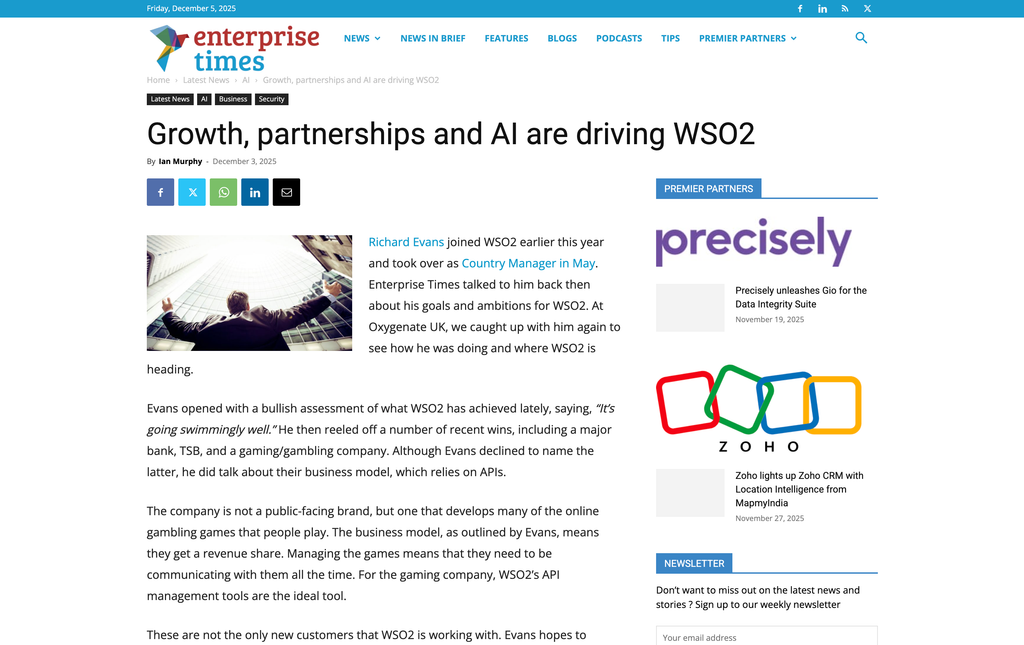 Enterprise Time reports that Growth, partnerships, and AI are driving WSO2, discussing Amanda's talk on the role of AI in Open Source. Read more:https://www.enterprisetimes.co.uk/2025/12/03/growth-partnerships-and-ai-are-driving-wso2/
