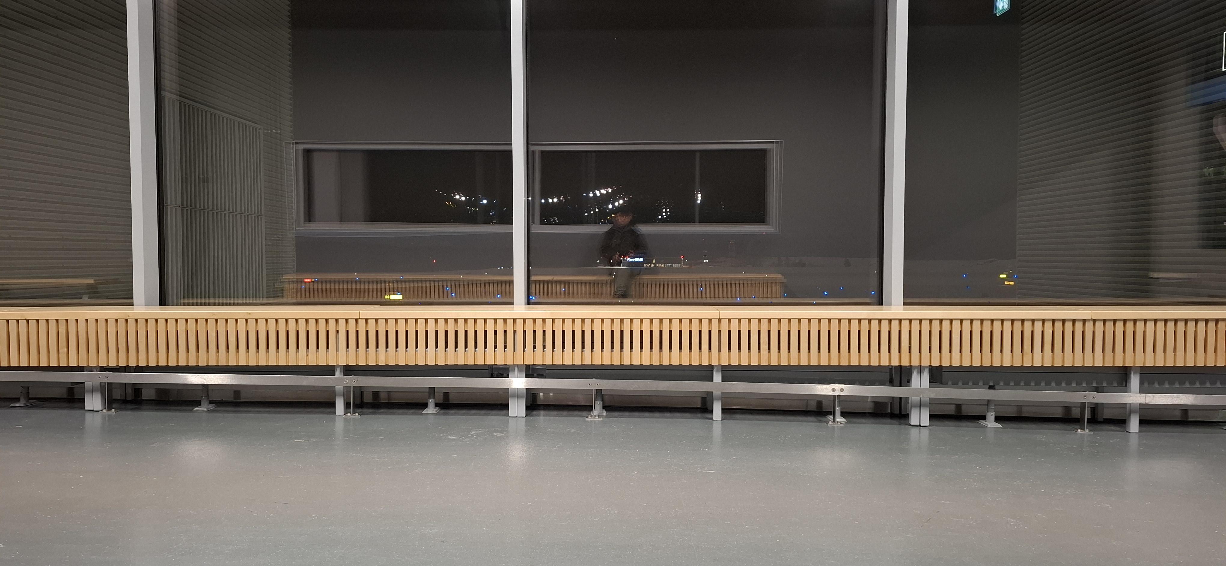 Self portrait in a dark, empty airport terminal corridor