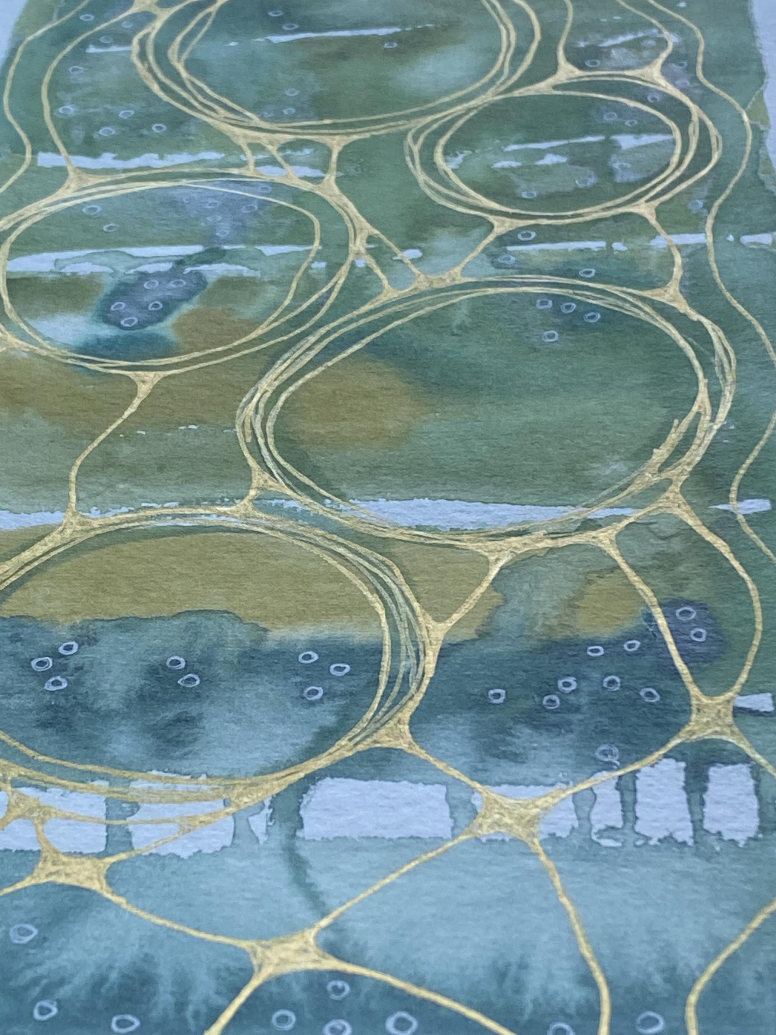 Gold Posca pen for the circles and neurographic inspired lines, Signo gel pen for the white circles