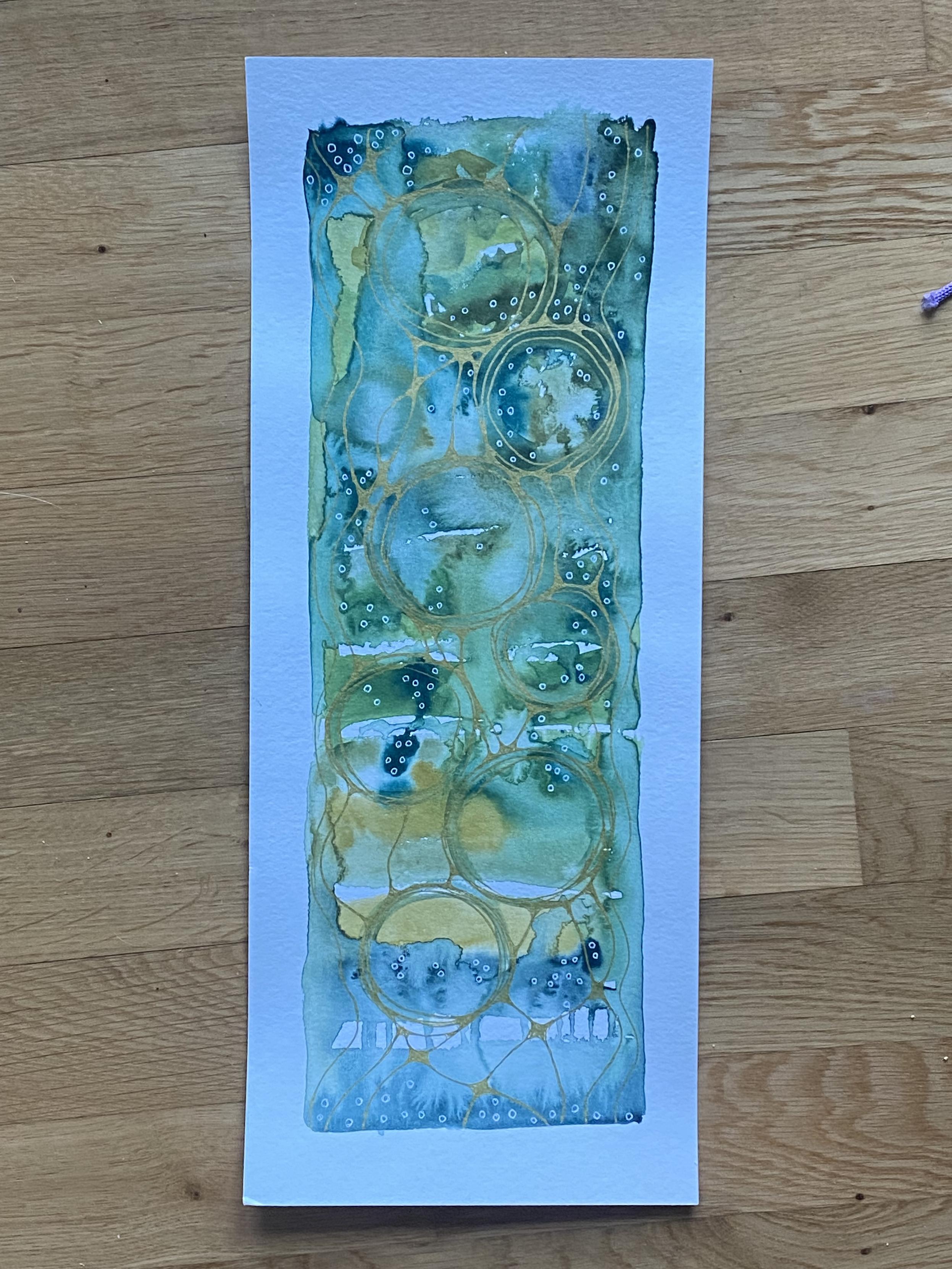 Green and yellow watercolour for the background
