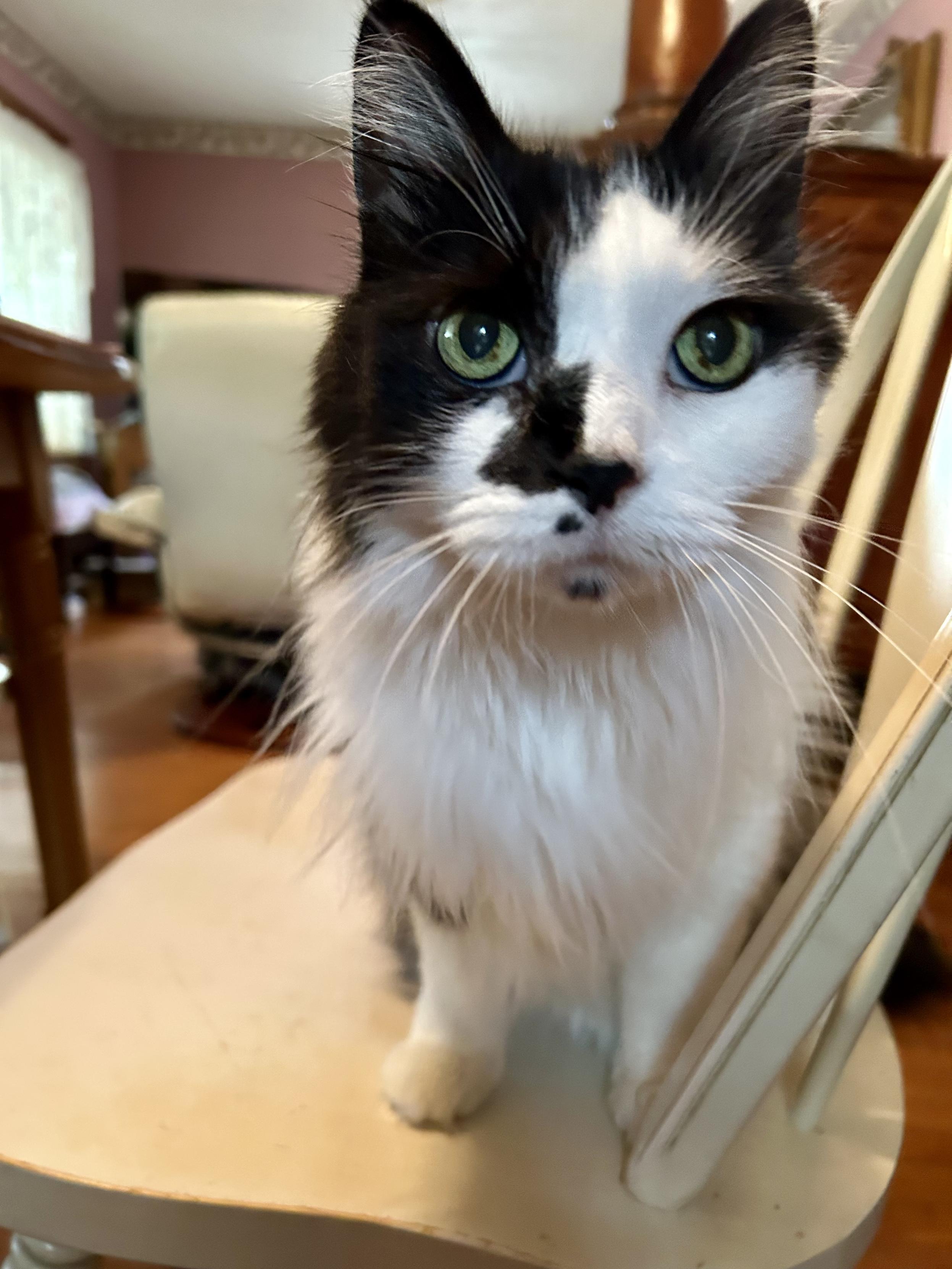 Waffles the Cat, saying thanks for some after-breakfast skritches.
