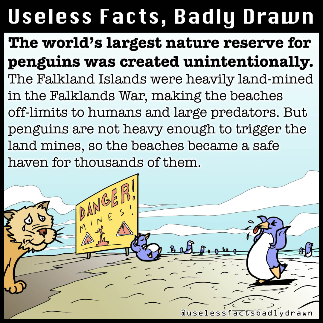 #falklandislands #islands #landmines #naturereserves #penguins #southamerica #patagonia #falklands #falklandswar #operationrosario #war #strangebuttrue #facts #funfacts #weirdfacts #comic #comics #webcomic #webcomics #uselessfacts #uselessfactsbadlydrawn