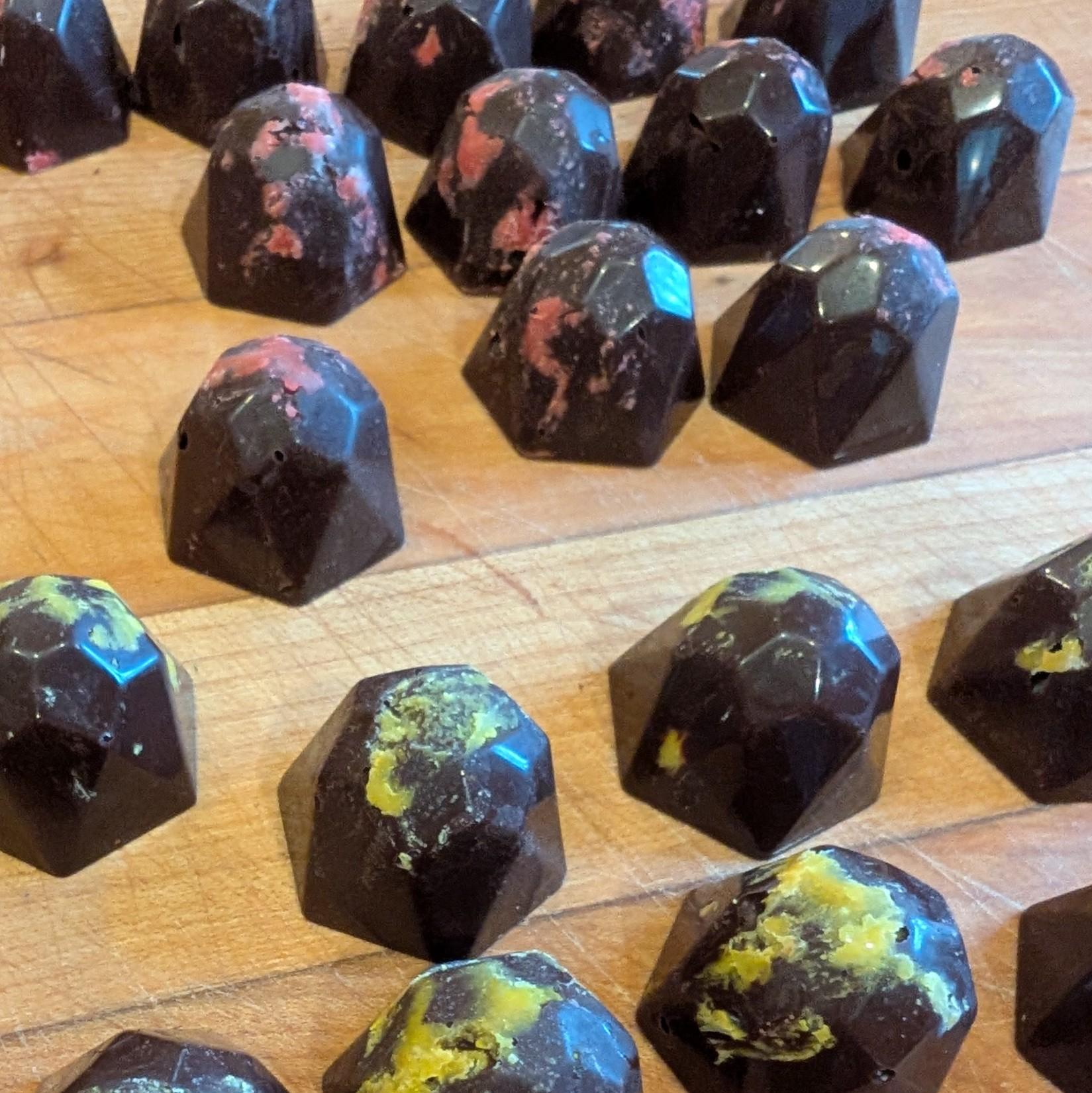 Made some #chocolate treats this morning, orange and cherry ganache, slow and attentive. Since learning that bubblegum flavor is orange+cherry I was tempted to make some mixed, but resisted.