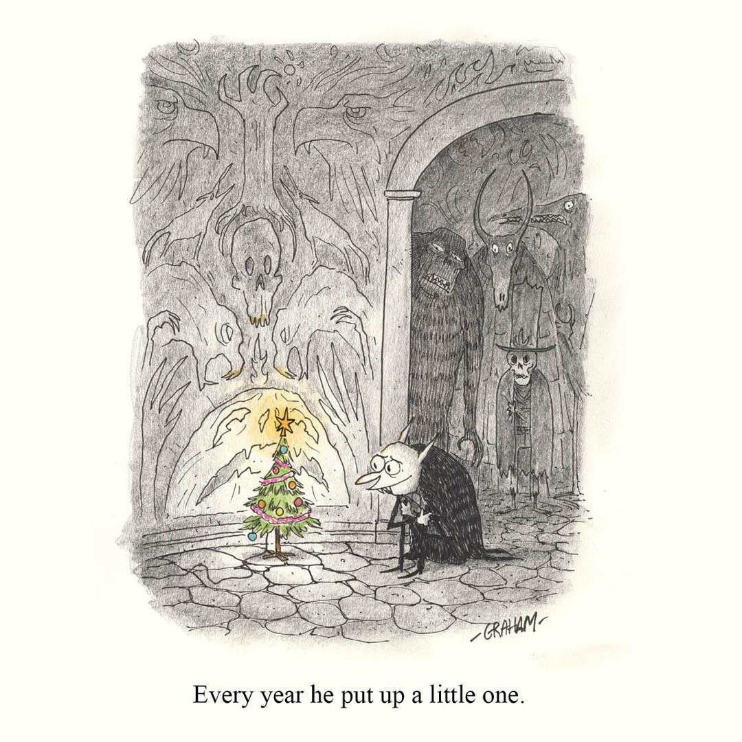 Every year he put up a little one. #grickledoodle #christmas #horror #holidays #vampire #cartoon #art #drawing #funny