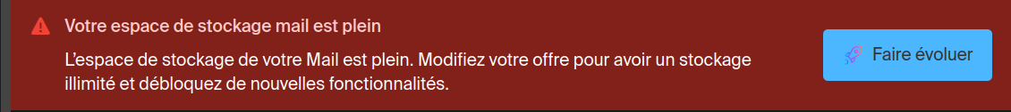 Si vous êtes chez Infomaniak et que vous avez un avertissement sur la taille de votre boîte mail, vous pouvez l'ignorer : C'est un bug et ils sont en train de le corriger.