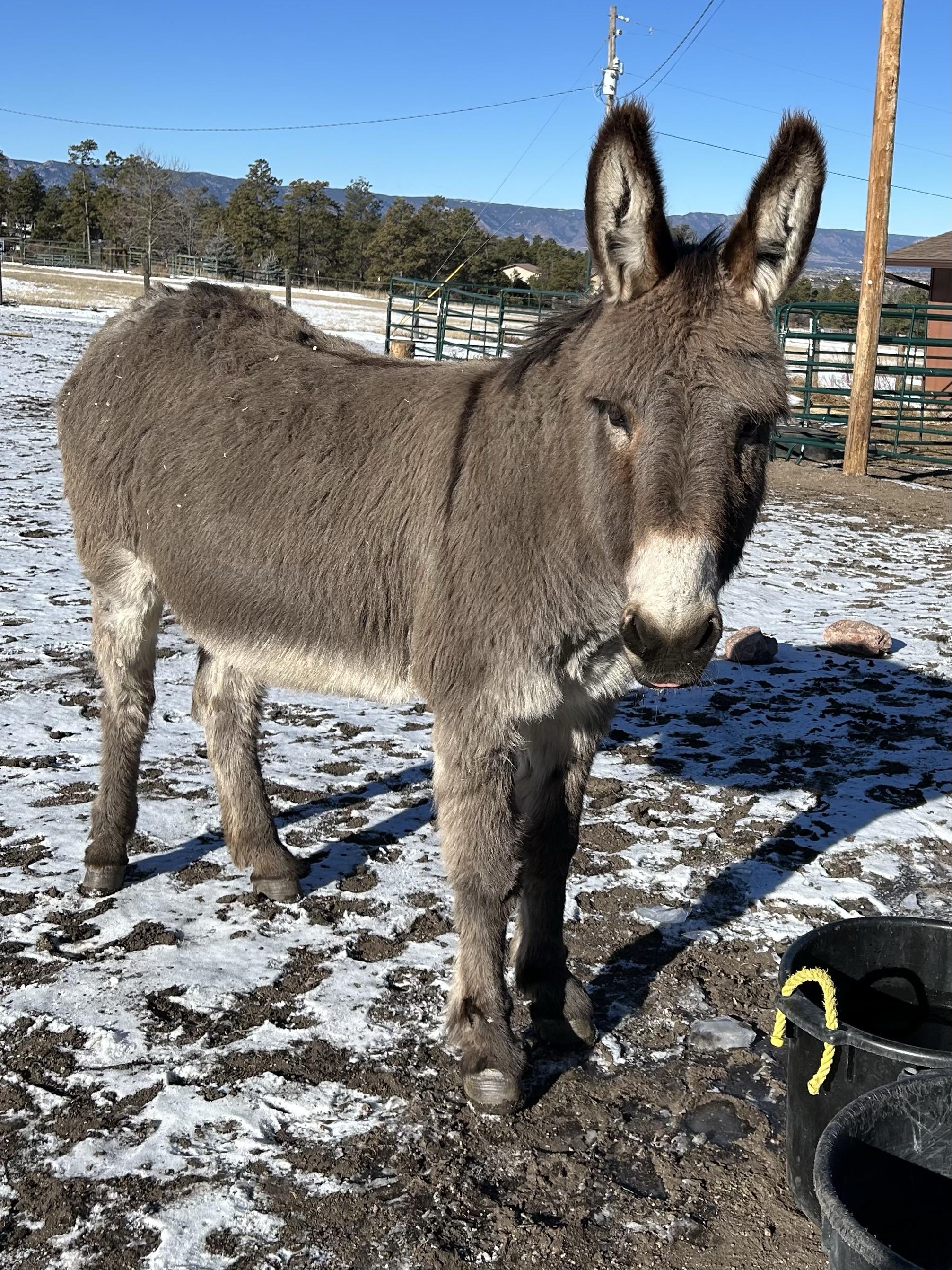 His impressively loud brays aren’t the only way Arturo communicates. For example if he wants to let me know the watering tubs are frozen or empty he knows how to say that silently and quite specifically: first he stares at me until I give him eye contact. Then he looks briefly at the thing that needs attention, pointing with his eyes and ears. Then he looks back at me to see if I got the message. He repeats this as needed until I start to move in a way that shows I got the memo. #asstodon #blep