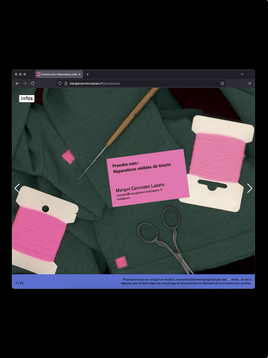 Que vous souhaitiez découvrir le projet ou me confier un tricot mal en point, tout est expliqué sur mon site https://margotcannizzolazaro.fr/prendresoin
