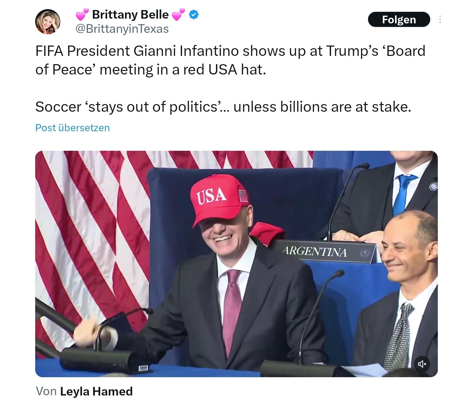 #Infantino repräsentiert nicht mehr den Fußball, er umgibt sich mit Antidemokraten/Oligarchen, widmet Trump einen lächerlichen FIFA Friedenspreis und ist ausschließlich fokussiert auf die Vermarktung dieser Sportart 💸💵, die WM in USA ist nicht meine WM