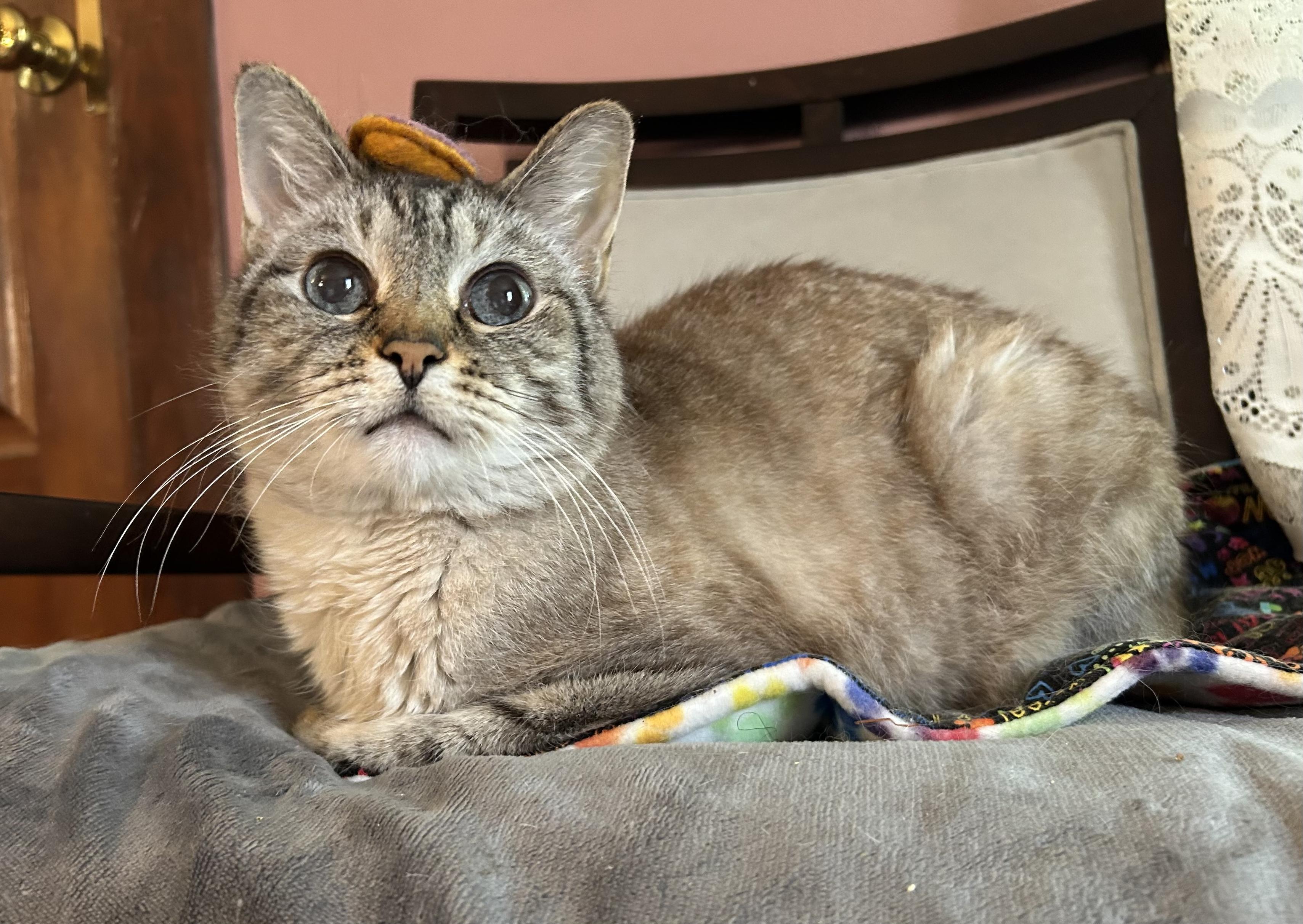 Lord Mayor ChunChun wearing a perennially fashionable catnip fish hat. You should try it too sometime!