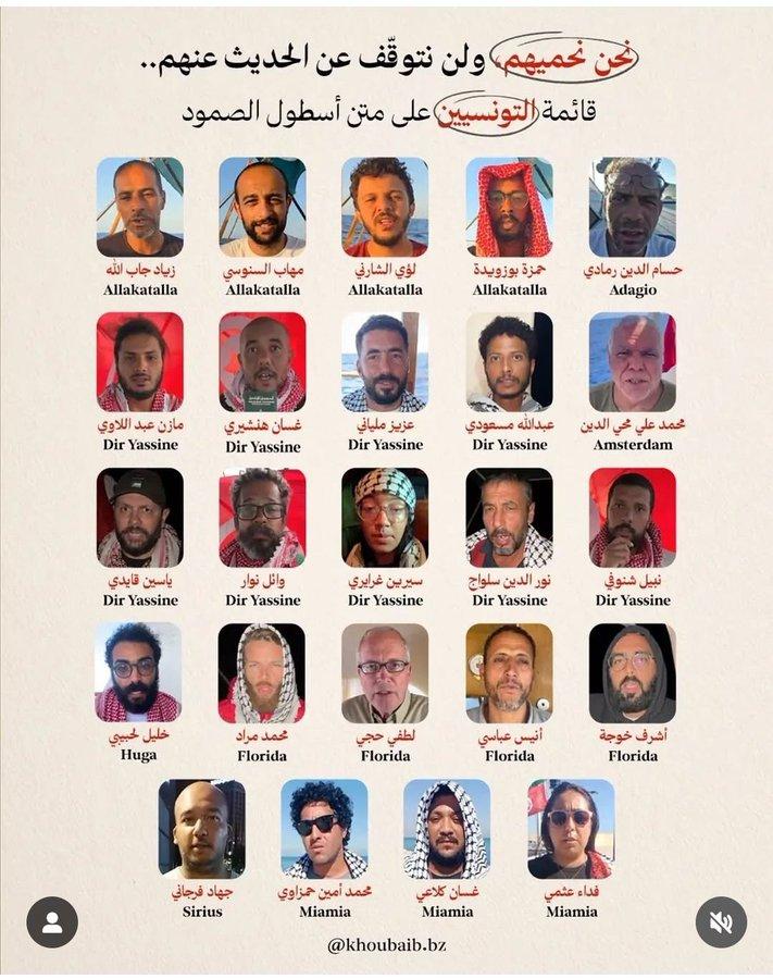 صور وأسماء التونسيين المشاركين في اسطول الصمود العالمي والمختطفين قصريا من الجيش النازي الصهيوني.