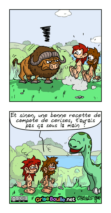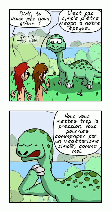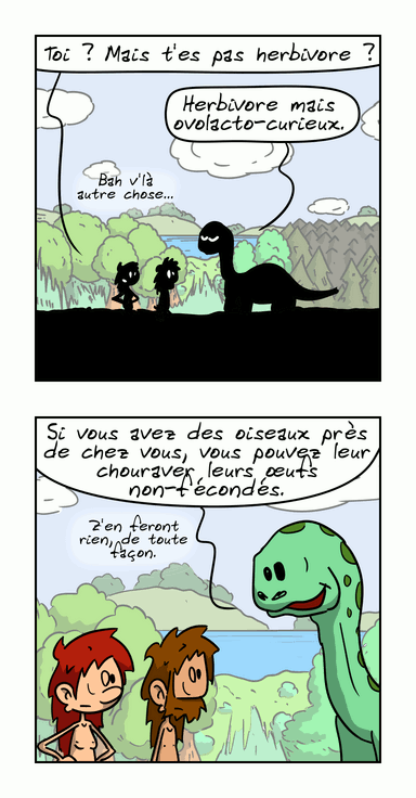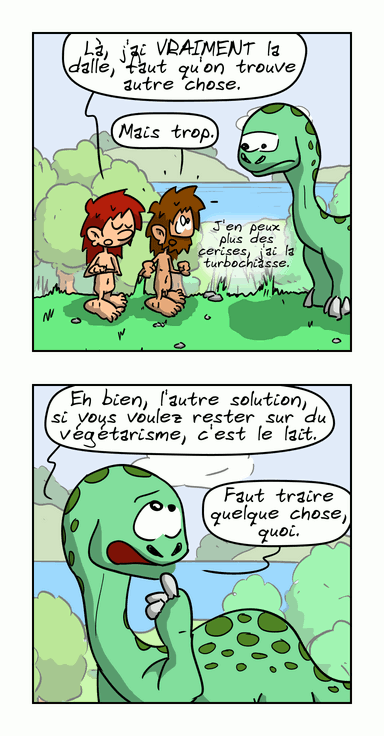 Oui, je sais, la bouffe, c'est un peu une obsession chez les personnages de cette BD : en même temps, à la préhistoire, c'était probablement pas simple…