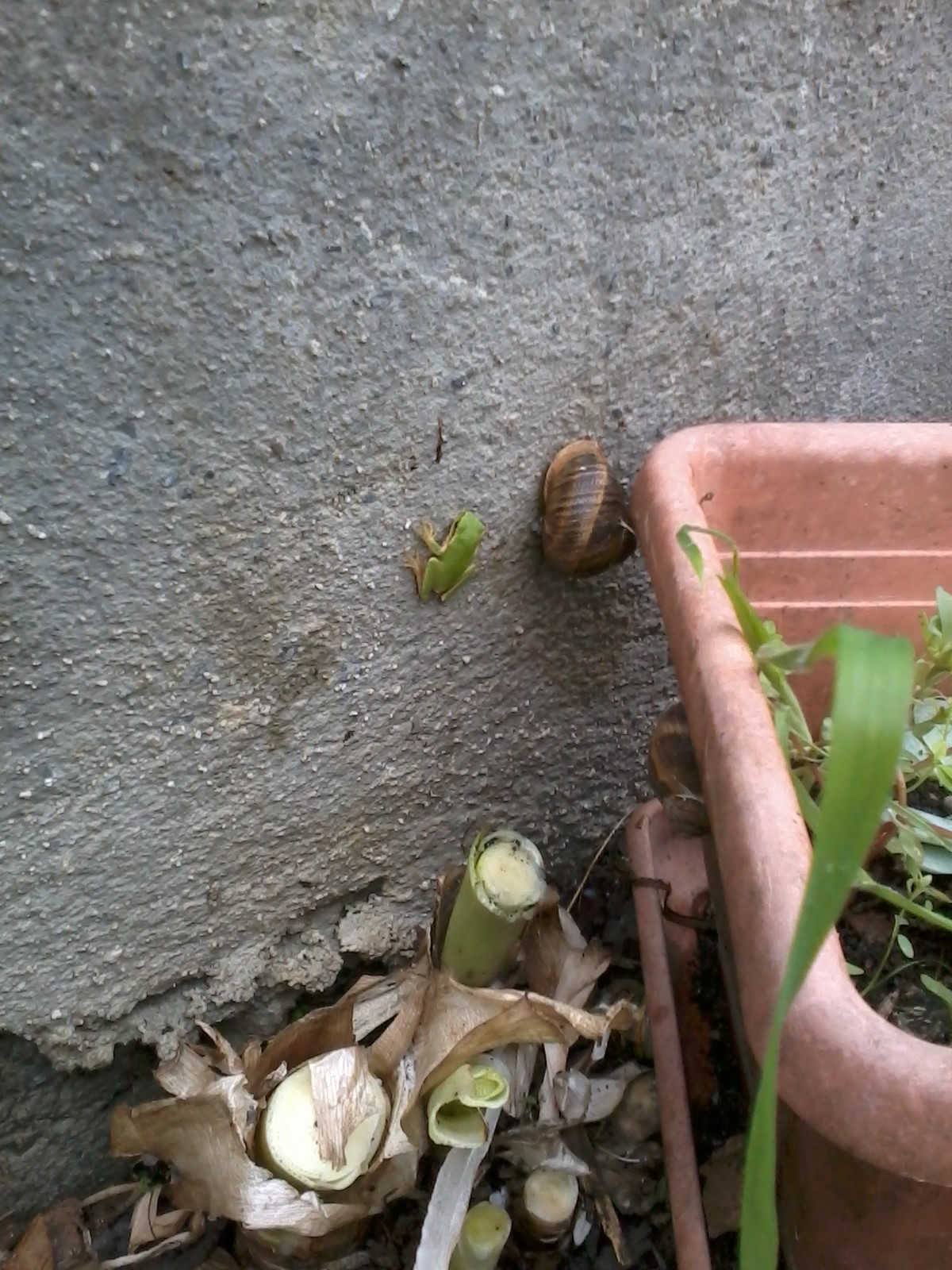 Often find #frogs in the water reservoir on top of my Greenstalk planter. This one had its own surfboard, Cowabunga dude.