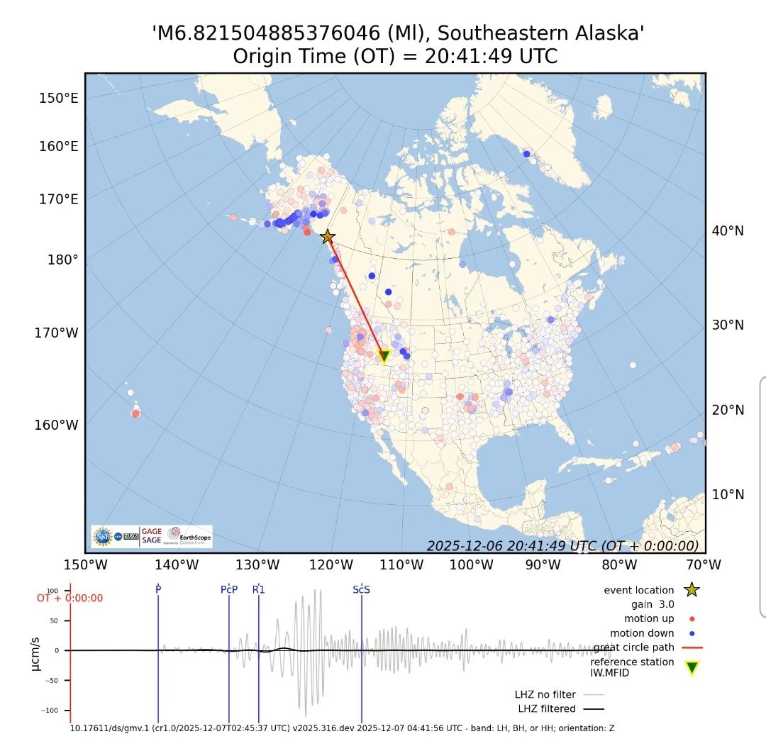 This is an animation of the seismic stations across the country being affected by the 7.0 #earthquake in Alaska on Dec 6, 2025.