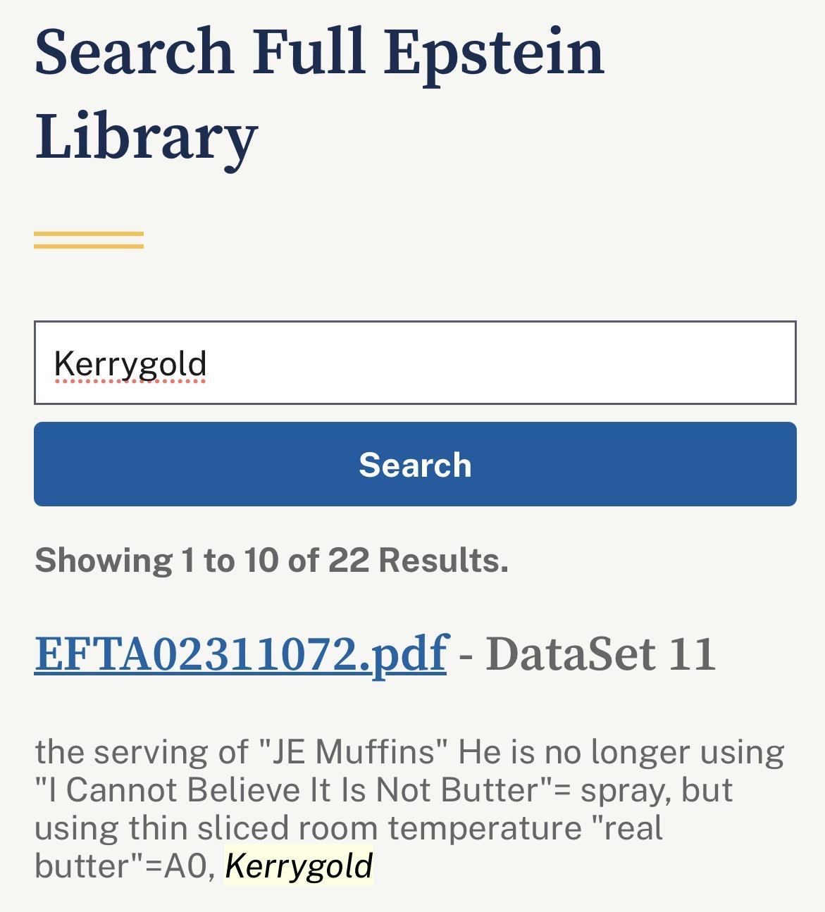There are 22 references to #Epstein using Kerrygold butter and this does not seem to be a euphemism.