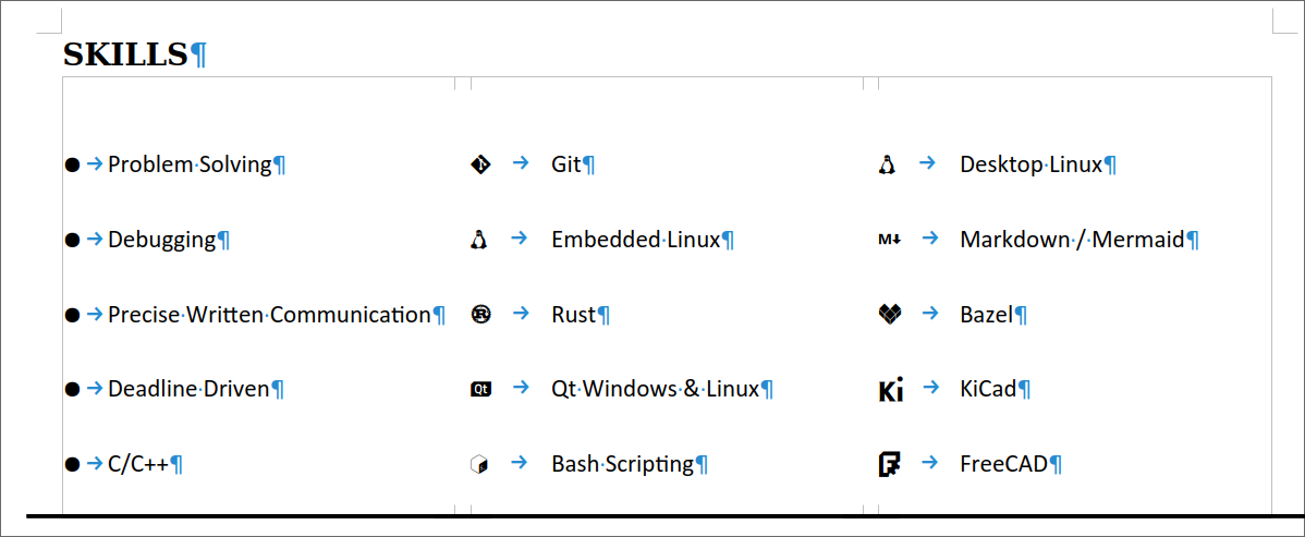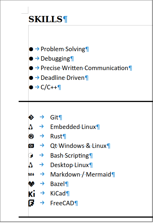 I've been recommended a new resume layout, but I can't get this section to be not spaced very wide.