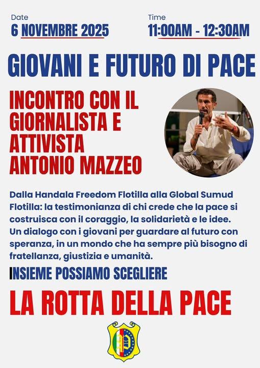Giovedì 6 novembre 2025, gli studenti della scuola secondaria di primo grado dell'IC "Parini" di #Catania parteciperanno all’incontro “Giovani e futuro di #pace – La rotta della pace”.